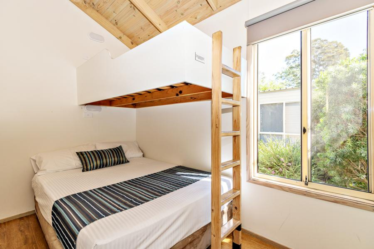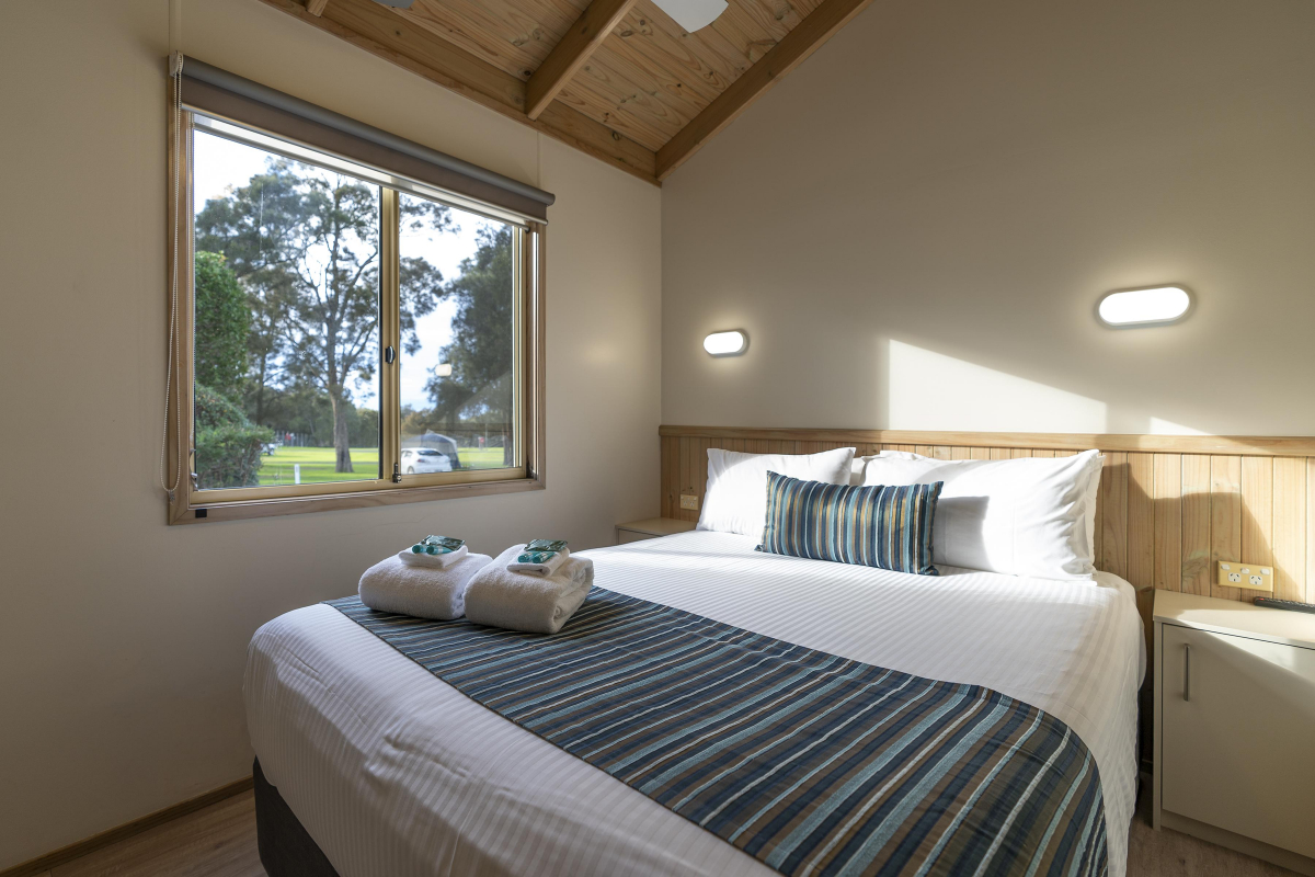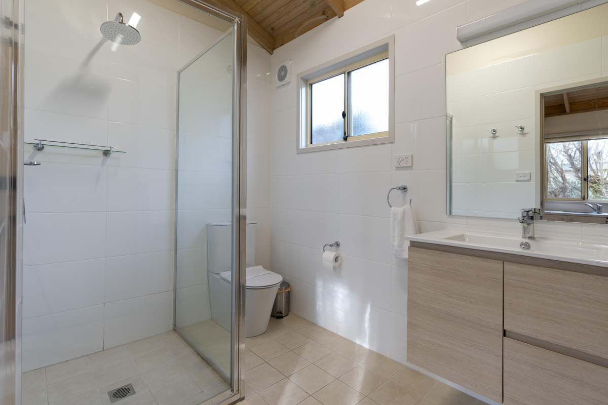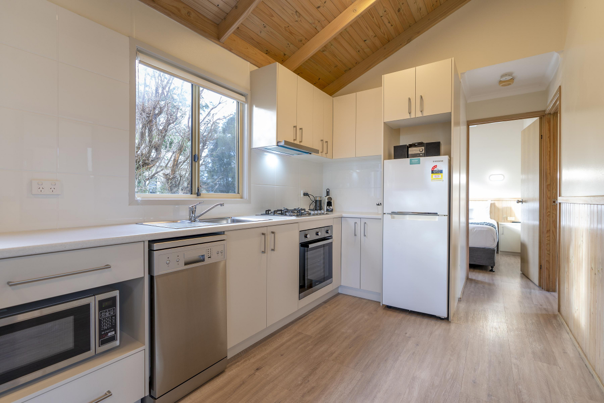 The Ibis Cabin features 2 bedrooms, the first bedroom has a queen bed and TV. The second bedroom features a double bed with a single bunk over the top. It is equipped with a full kitchen with crockery & cooking utensils provided, bathroom (no bath) and living area, complete with TV, DVD player and stereo. It has reverse cycle air conditioning and features ceiling fans for the warmer months. All linen is provided and sleeps 5.