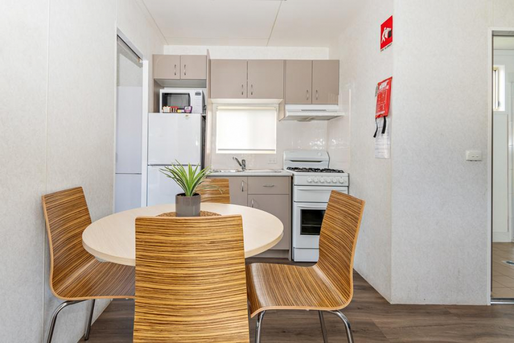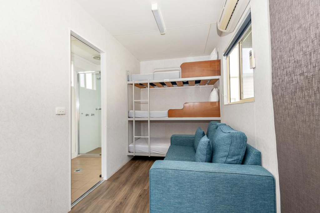 The Shoalhaven Cabin is our most basic older style cabin. It contains a fully equipped kitchenette and ensuite. This cabin has TV / DVD & A/C. The Shoalhaven Cabin offers a double bed in the main bedroom, and set of triple bunks in the main living area. Linen & towels provided for all guests.