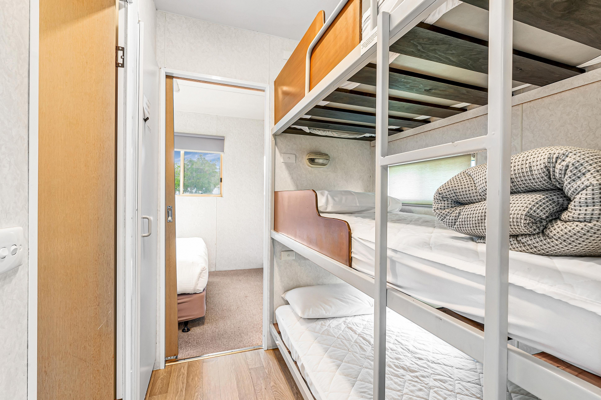 The Tabourie is a basic family cabin also suitable for couples. The cabin offers a double bed in the main bedroom and a triple bunk in the hallway with all linen and bath towels provided.