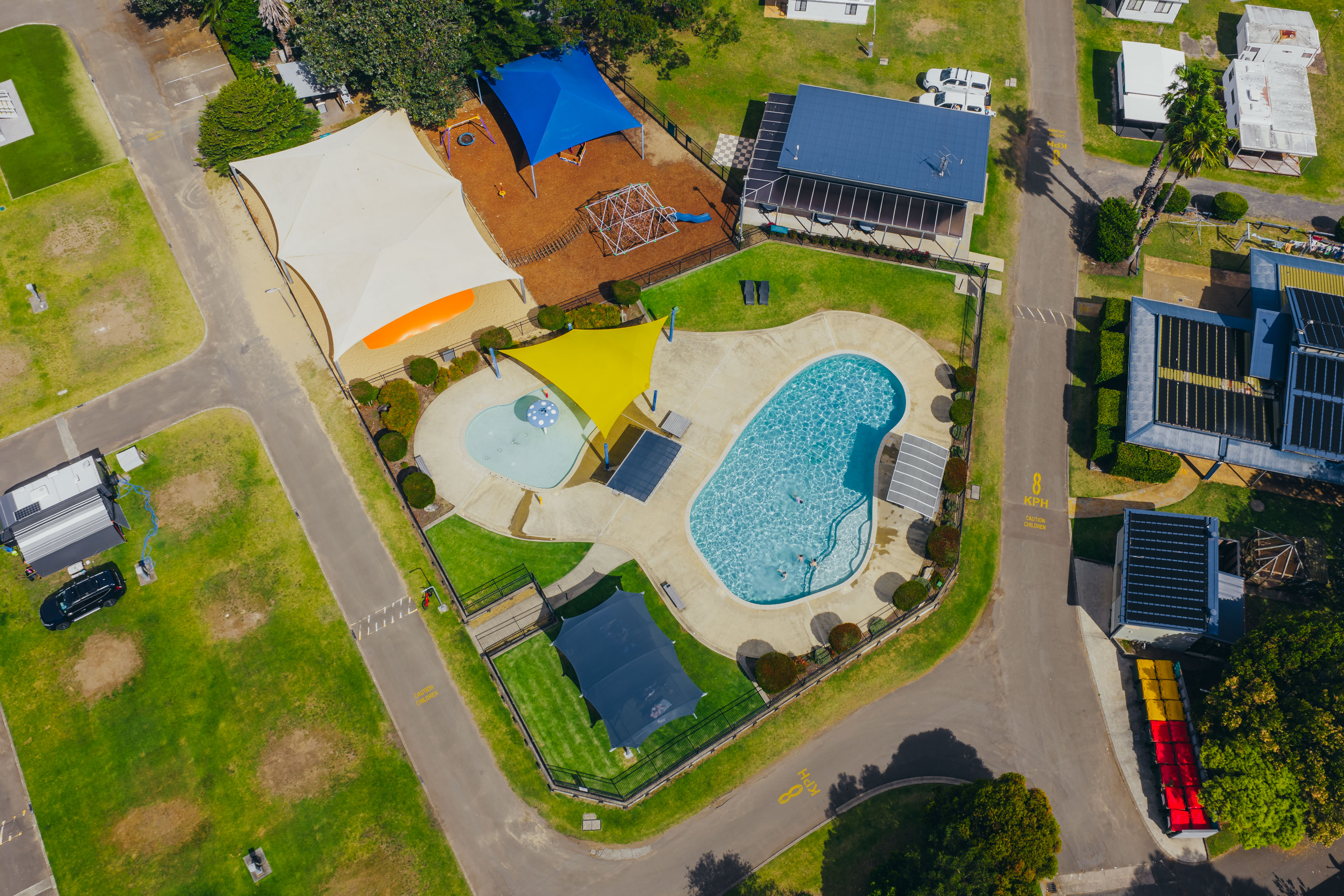 Holiday Haven Shoalhaven Heads is bordered by Seven Mile Beach and the Shoalhaven River making it the ultimate place for a getaway. Our accommodation options include fully self-contained waterfront cabins, riverfront powered sites and our Dunes complex which is the perfect accommodation option for families and groups. Did we mention that our cabins include private decking to soak up all that serenity? While we are perfectly situated as a base for local wineries, cafes, restaurants, and Jervis Bay, you may be hard pressed to ever leave the park – here we have a covered cinema area, solar assisted heated pool, fishing, surfing and so much more.