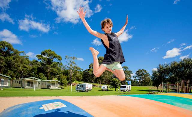 Situated in a stunning valley leading down to absolute beach frontage, Ingenia Holidays Eden Beachfront has the best that nature can offer – the ocean, the placid waters of Shadrack Creek, the raised forest slopes with stunning panoramic views – and all of this within a short drive of the historic township and port of Eden. Our pet friendly Eden caravan park offers an array of accommodation, from cabins, chalets and villas to powered, unpowered and ensuite sites, with many options offering absolute beach frontage. Take advantage of the many barbecues located around our holiday park and enjoy an outdoor picnic, surrounded by peace and quiet. While staying at the park you'll enjoy the playground, jump pad, games room, tennis court and nearby walking tracks, or head to the beach and go fishing, kayaking or surfing. The region brings together the best of Northern and Southern Ocean currents, brimming with exciting sea-life – from dolphins to seals and our famous whales. Ingenia Holidays Eden Beachfront offers the perfect coastal escape.