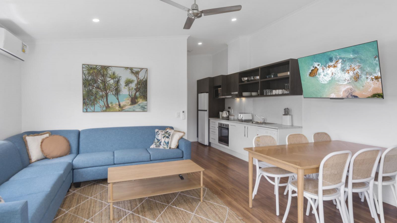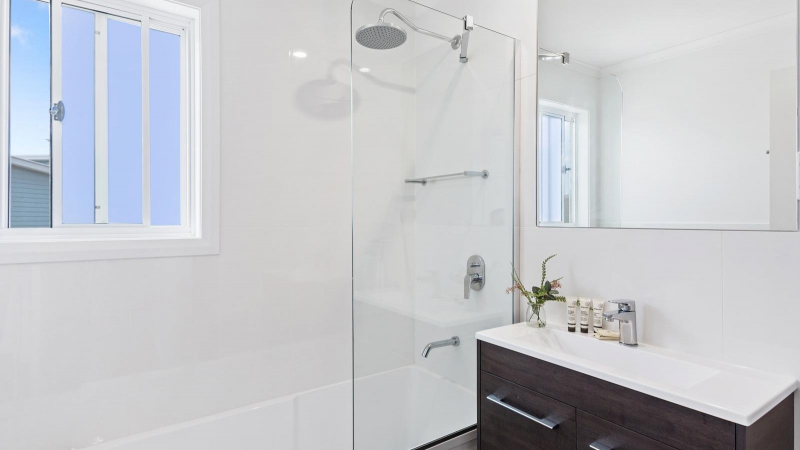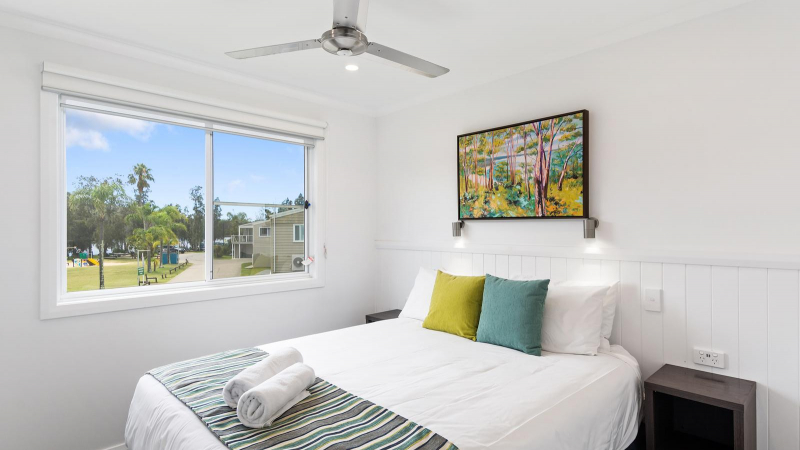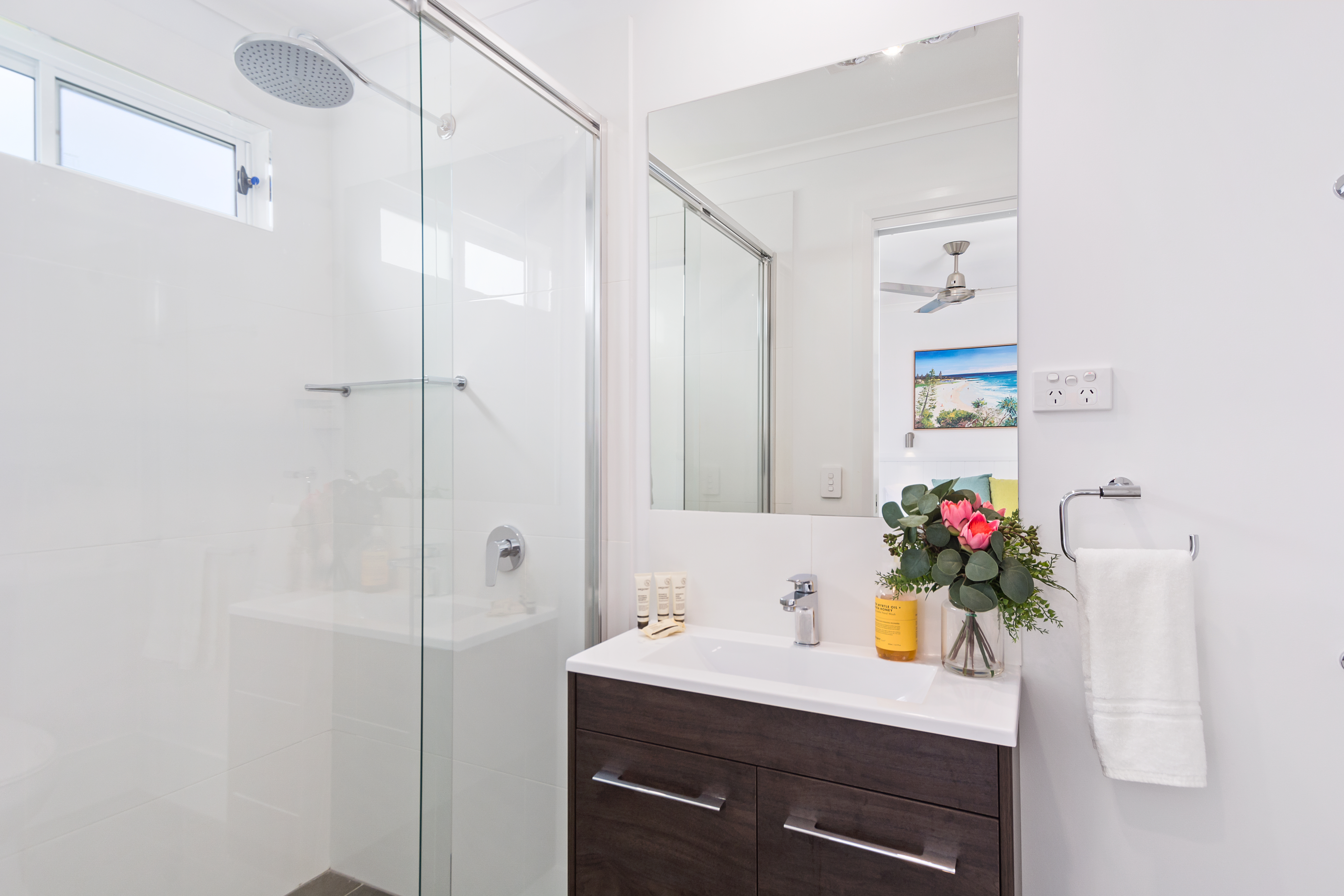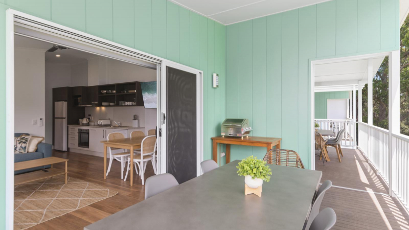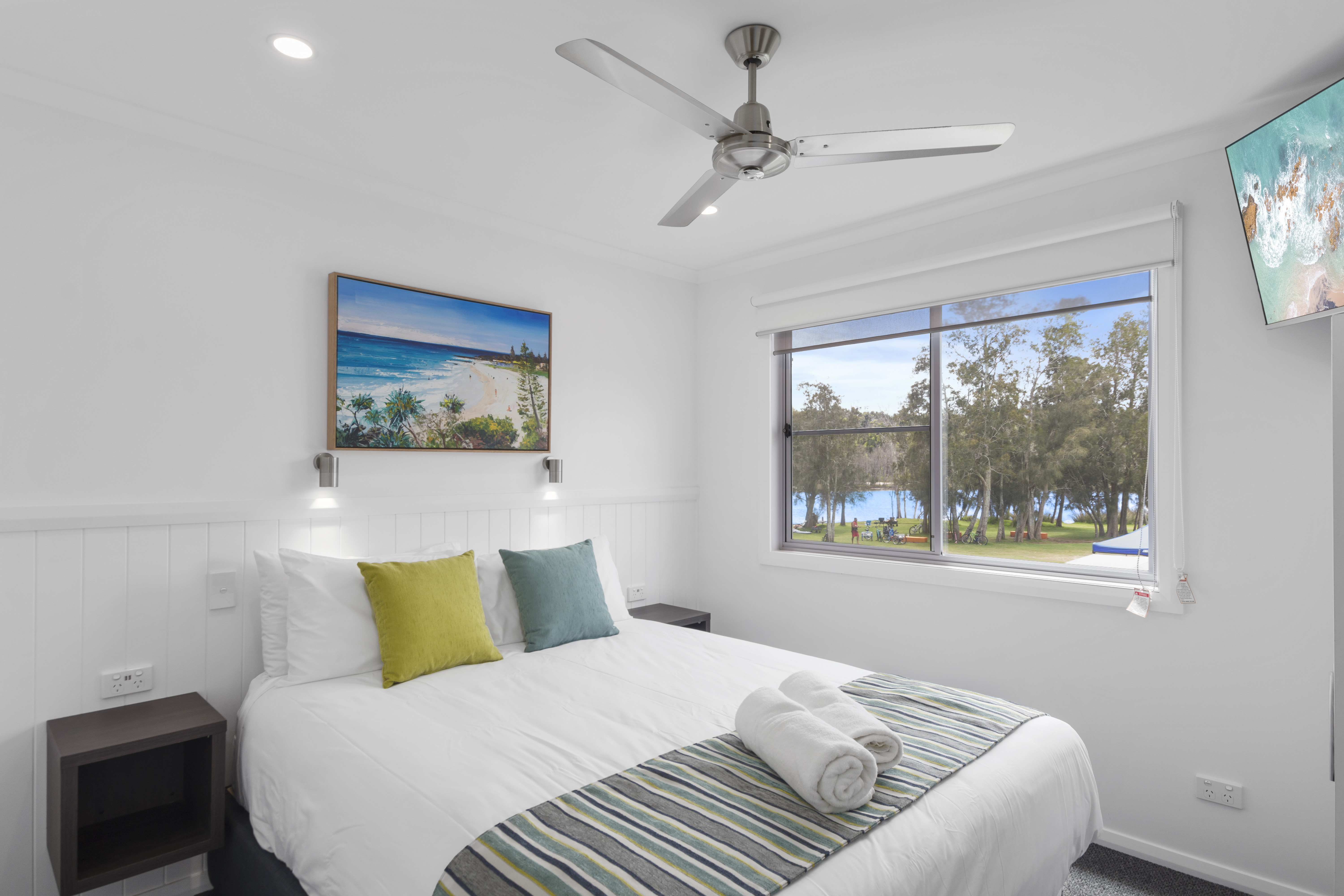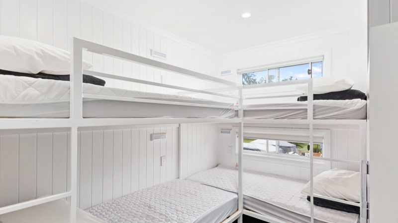 Our Lakeview Luxury Villas sleep up to eight guests with a queen bed and ensuite in the main bedroom, a queen bed in the second bedroom and 2 bunks in the third bedroom. Enjoy a spacious, open plan living space, and a sizeable deck overlooking Lake Conjola.