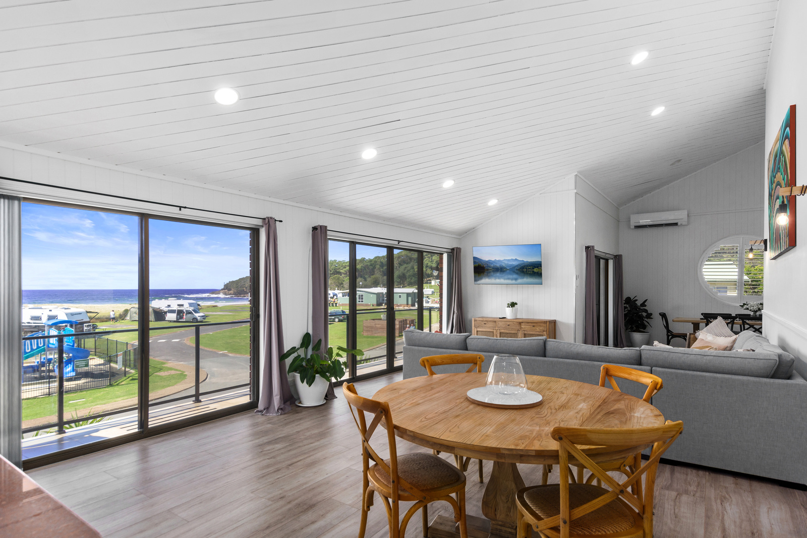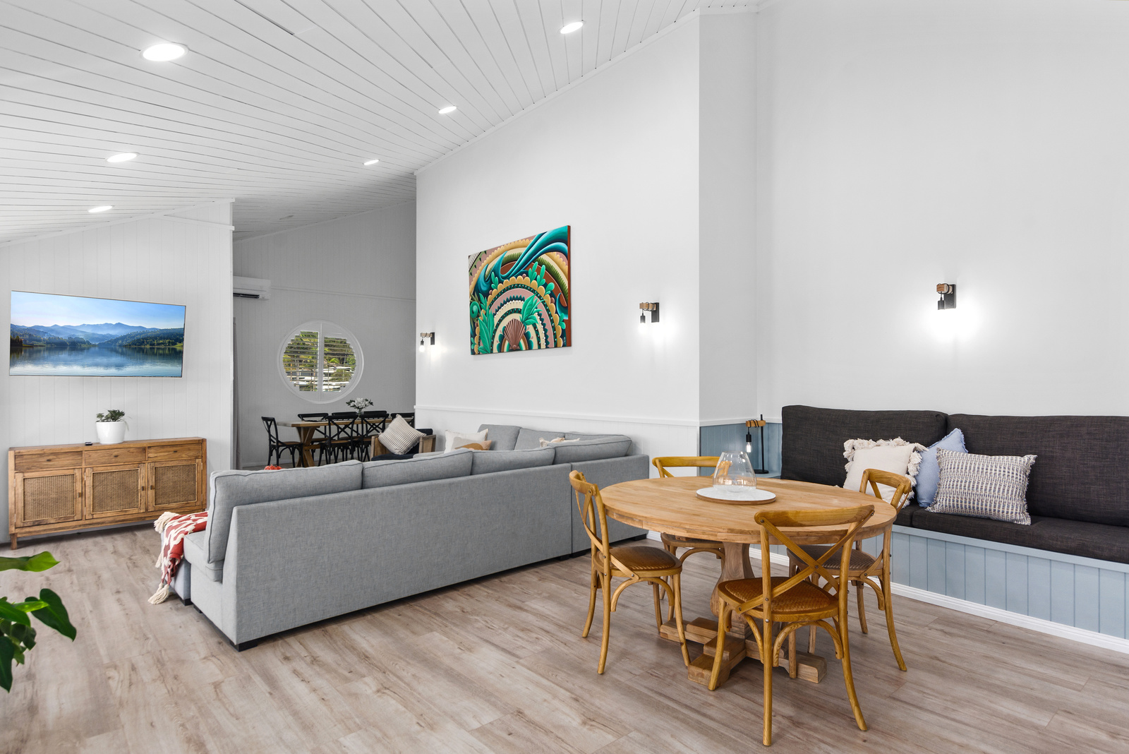 Enjoy stunning, uninterrupted views of Merry Beach and enjoy a charming nautical vibe. Our Oceanview Apartment sleeps up to seven guests with a king bed in the main bedroom including a spacious balcony, a queen bed in the second bedroom and two singles plus a trundle in the third bedroom. Also features a bathroom, kitchen, and private balcony with BBQ.