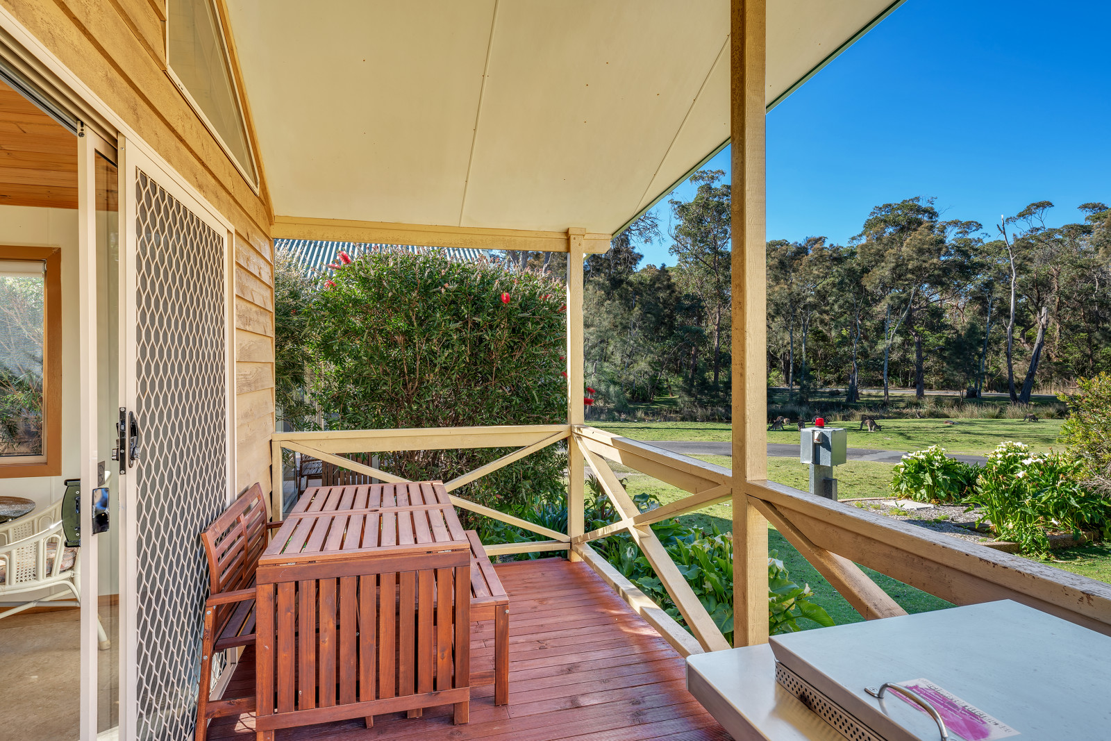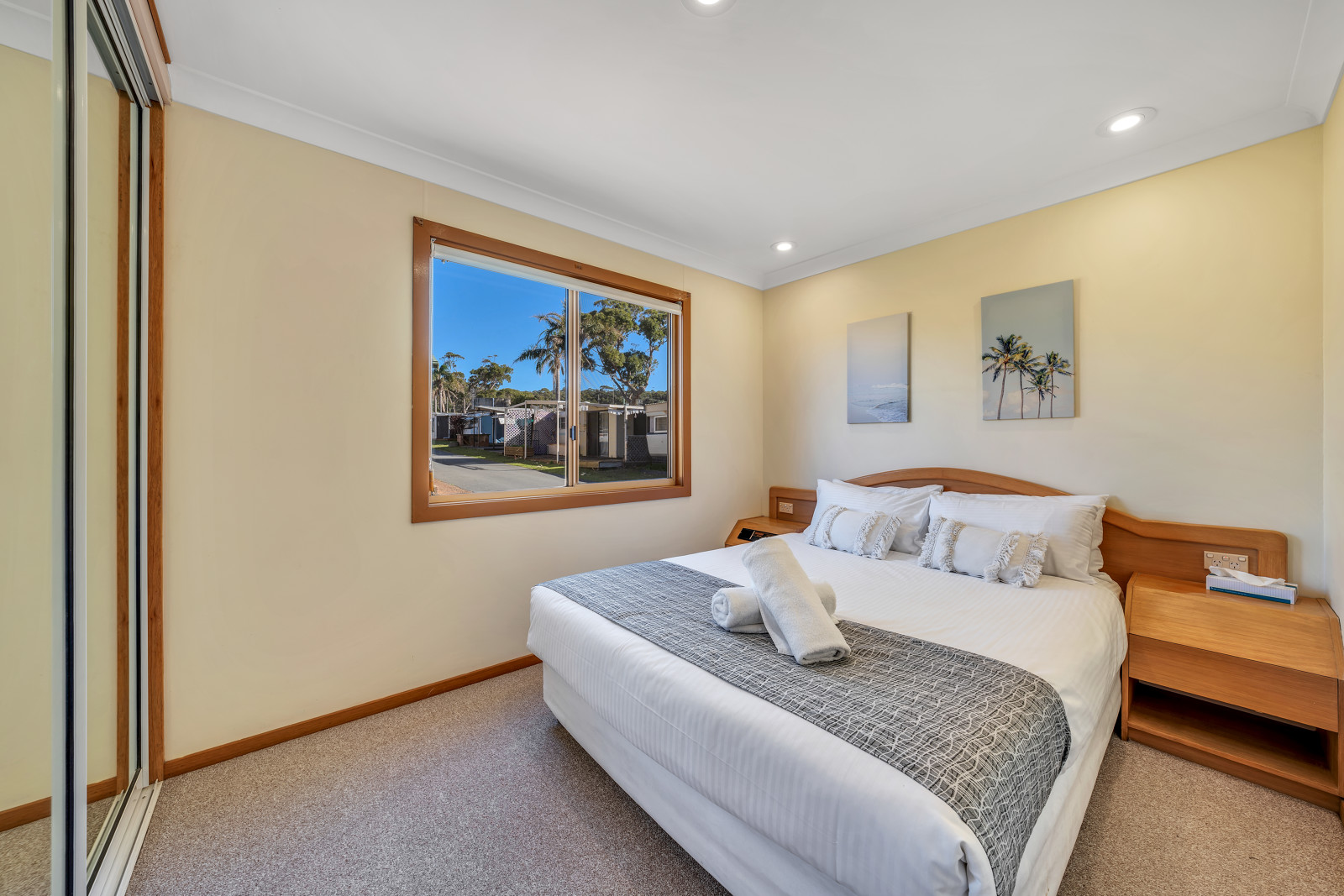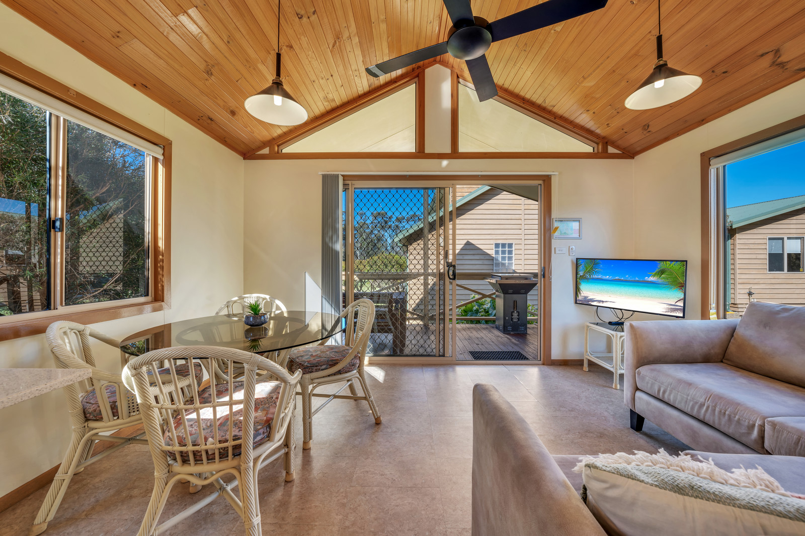 Stay close to the beach, with some cabins even offering a view. Our 2 Bedroom Standard Cabins sleep up to five guests (maximum 3 adults), with a queen bed in the main bedroom and either a bunk and single bed, or a double with single bunk above in the second bedroom. Also features a bathroom with either a shower over spa or walk-in shower, kitchen, living area, and private deck with BBQ. Please ensure you advise your bedding preferences at the time of booking.
