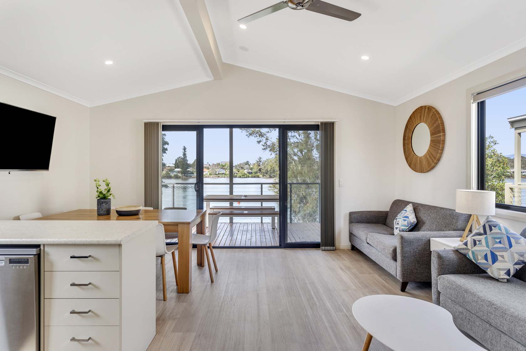 Unwind in riverfront luxury in this elevated three-bedroom villa, perfect for families or groups of up to eight.