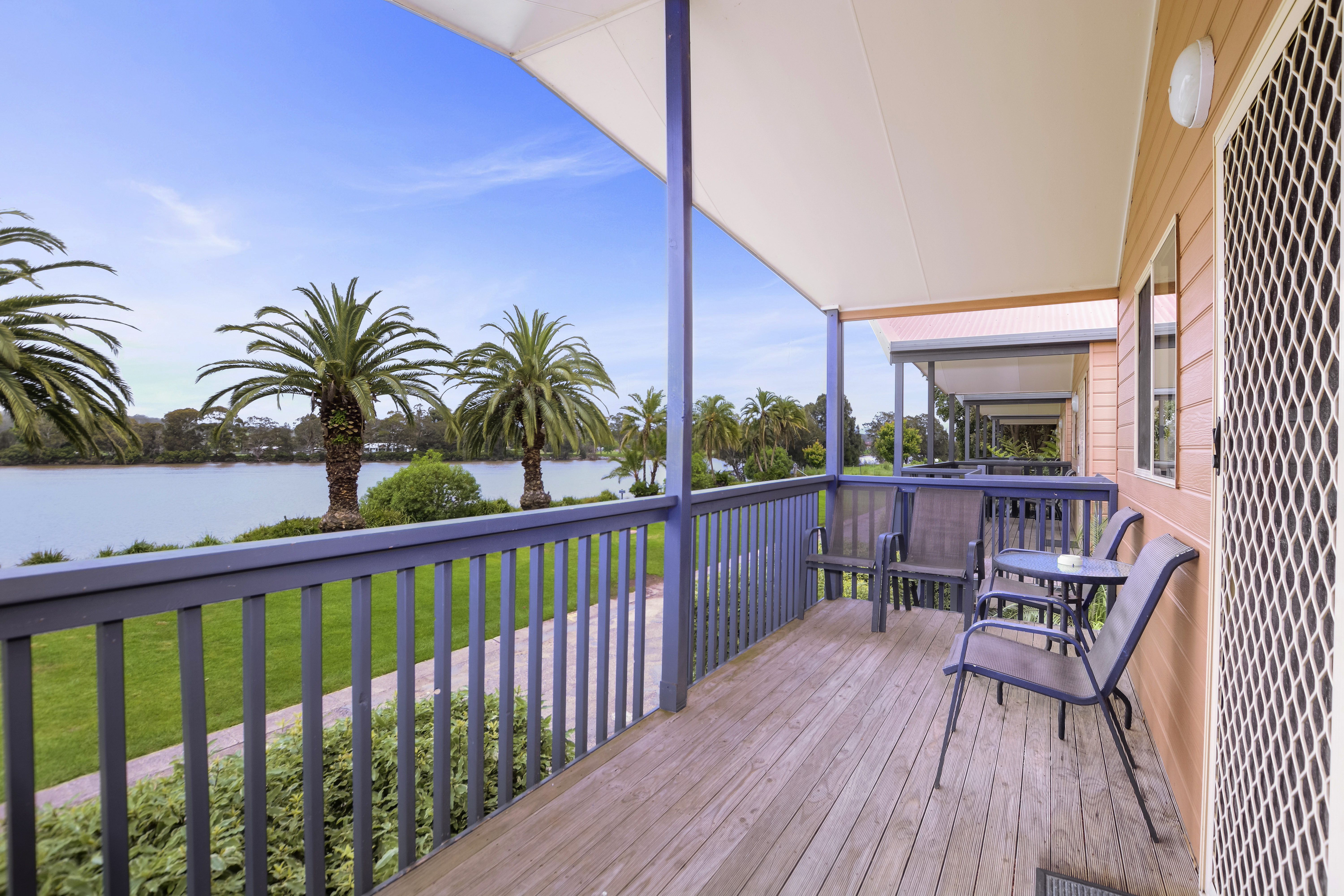 Take in picturesque river views from this comfortable two-bedroom spa villa, sleeping up to five guests.