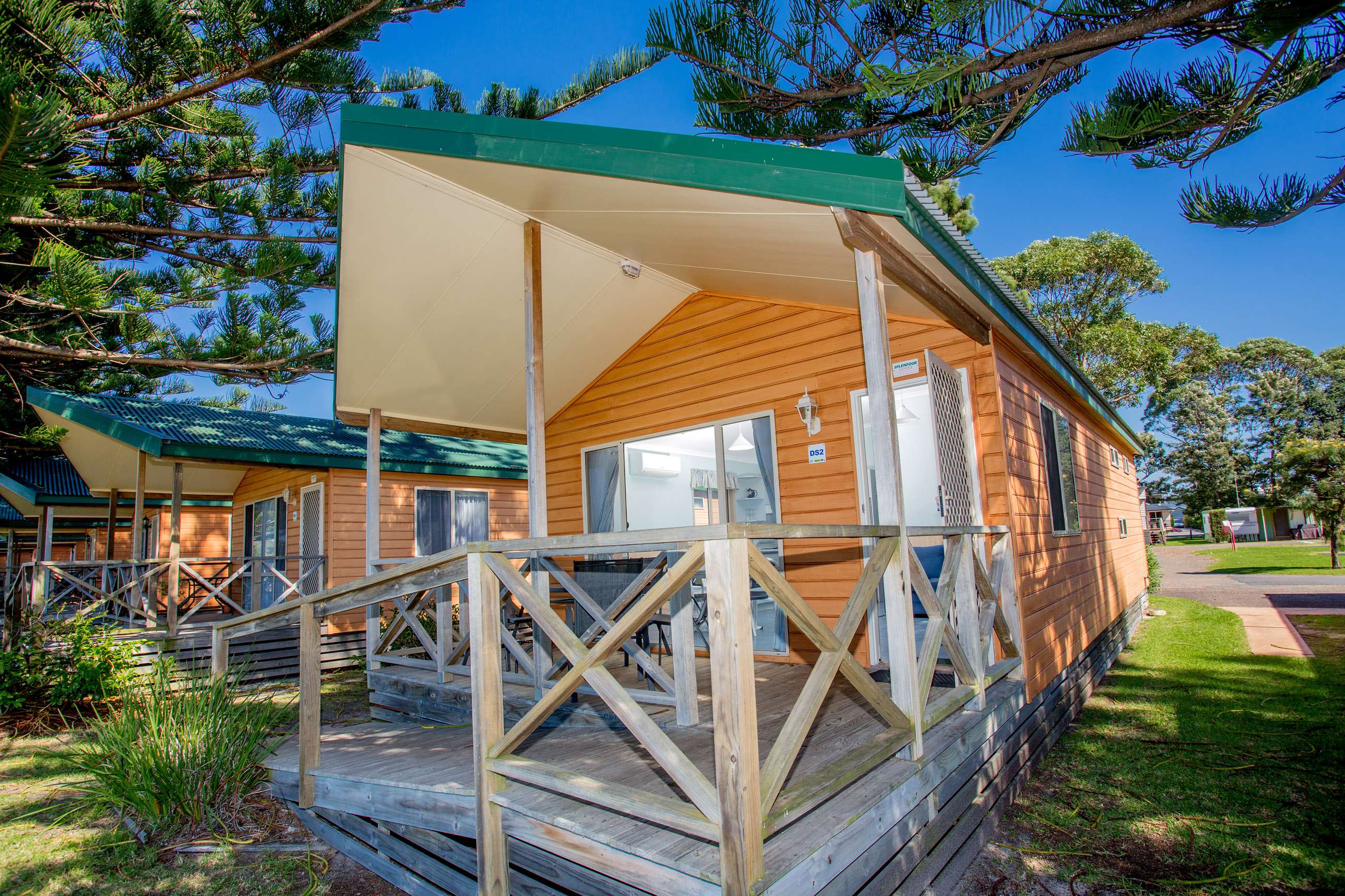 The Two Bedroom Waterfront Inlet View Spa unit is fully self-contained with a queen bed in one room and two double bunk beds in the second bedroom. The unit sleeps 6 and all linen is provided.
