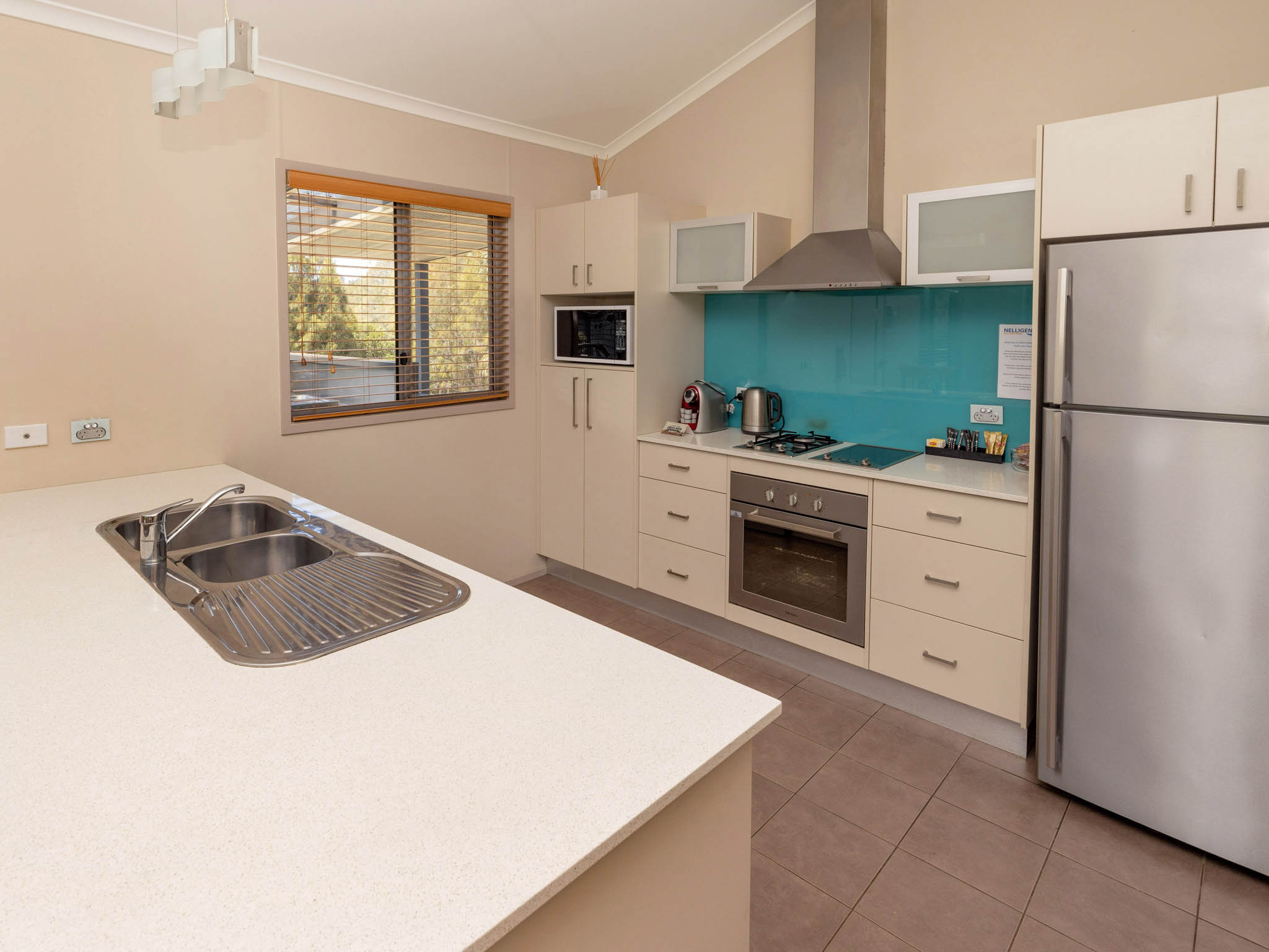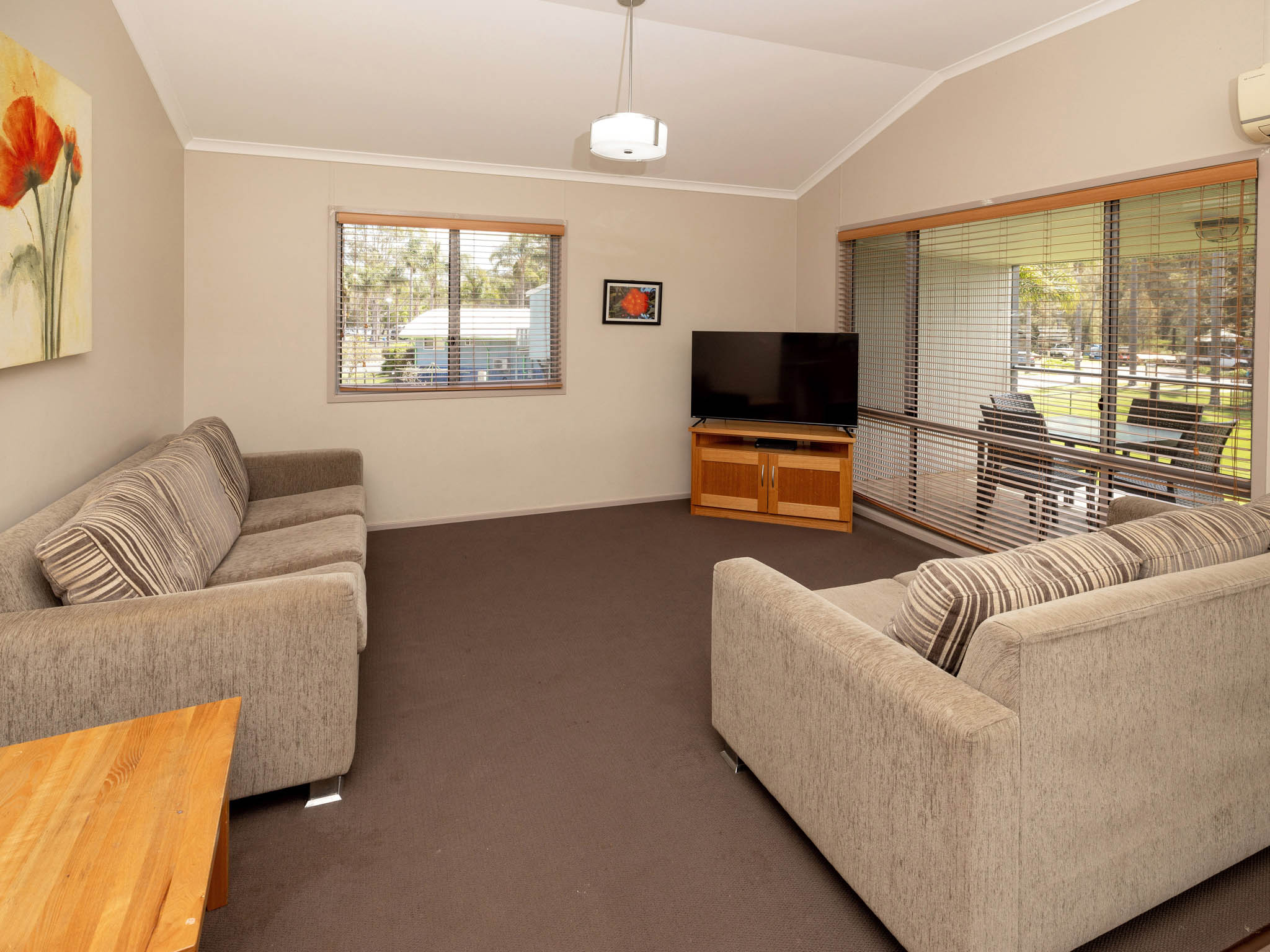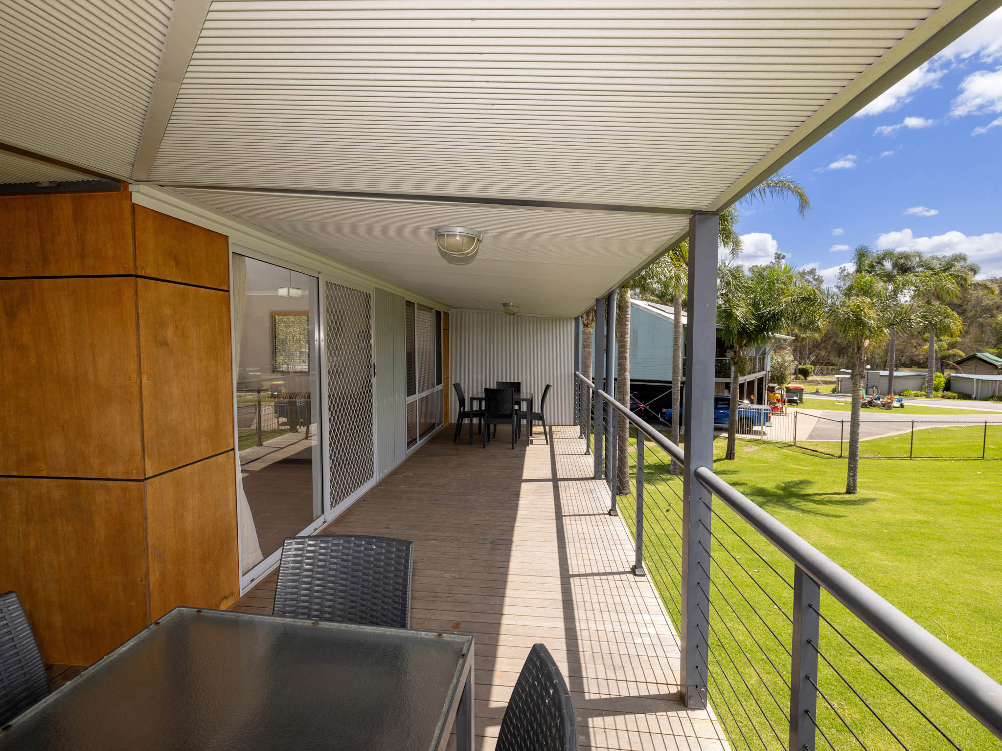 It features two bathrooms, a fully equipped kitchen, and an undercover BBQ deck overlooking the park. With on-site parking and open-plan living, it’s a great fit for larger families or small groups.