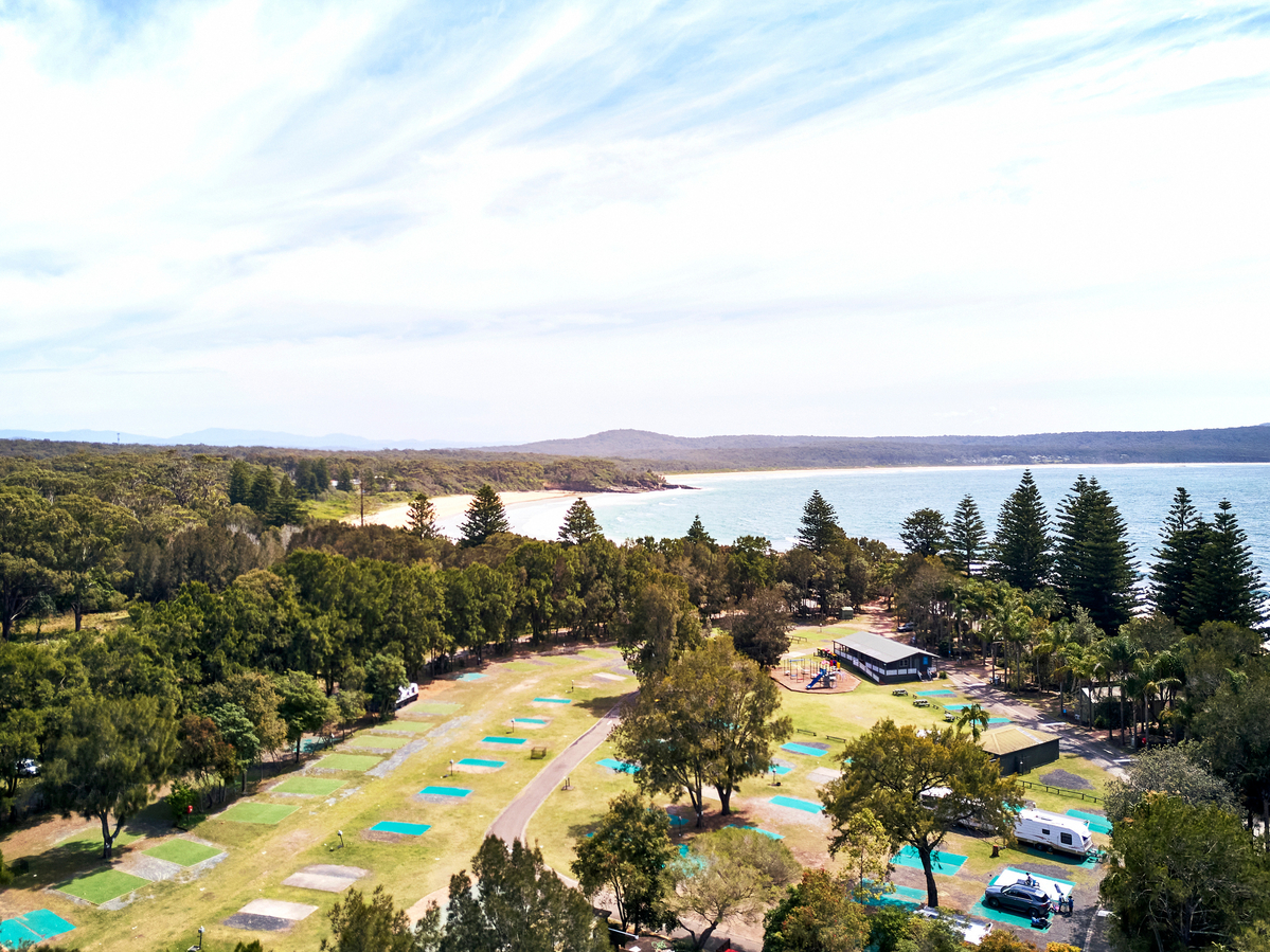 NRMA Murramarang Beachfront Holiday Park resides along Wobbegong Bay, just north of Bateman's Bay on the New South Wales coastline. The clear blue water makes this park a great place for children and adult alike as a place to spot dolphins and seals without leaving the park! Choose to stay beachfront or bush side in a comfortable cabin or villa, a fully equipped glamping tent or enjoy the great outdoors on a caravan site or camping site. No matter what you choose, you’ll instantly be immersed in the natural surrounds of the National Park and welcomed by friendly locals we like to call kangaroos. Murramarang National Park, located just a 20-minute drive north, has 44km of coastline to explore, and 20 minutes south will take you to the Holmes Lookout, where you can see a spectacular view over Batemans Bay!
