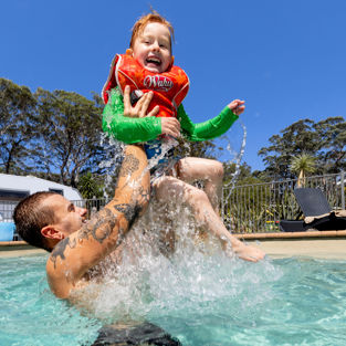 Located 15km north of Batemans Bay, BIG4 South Durras Holiday Park is just metres from Durras Main Beach and is surrounded by Murramarang National Park. A perfect base to relax and escape the hustle and bustle, BIG4 South Durras Holiday Park offers accommodation in beautiful cabins and villas, as well as pet friendly grass or slab sites for caravans and camping. Our park facilities include a Jumping Castle, giant checkers, undercover areas with free gas BBQs, a camp kitchen, book and video library, playground, heated swimming pool, open air theatre area and much more. We look forward to welcoming you to BIG4 South Durras Holiday Park for your next weekend away, short break or holiday.