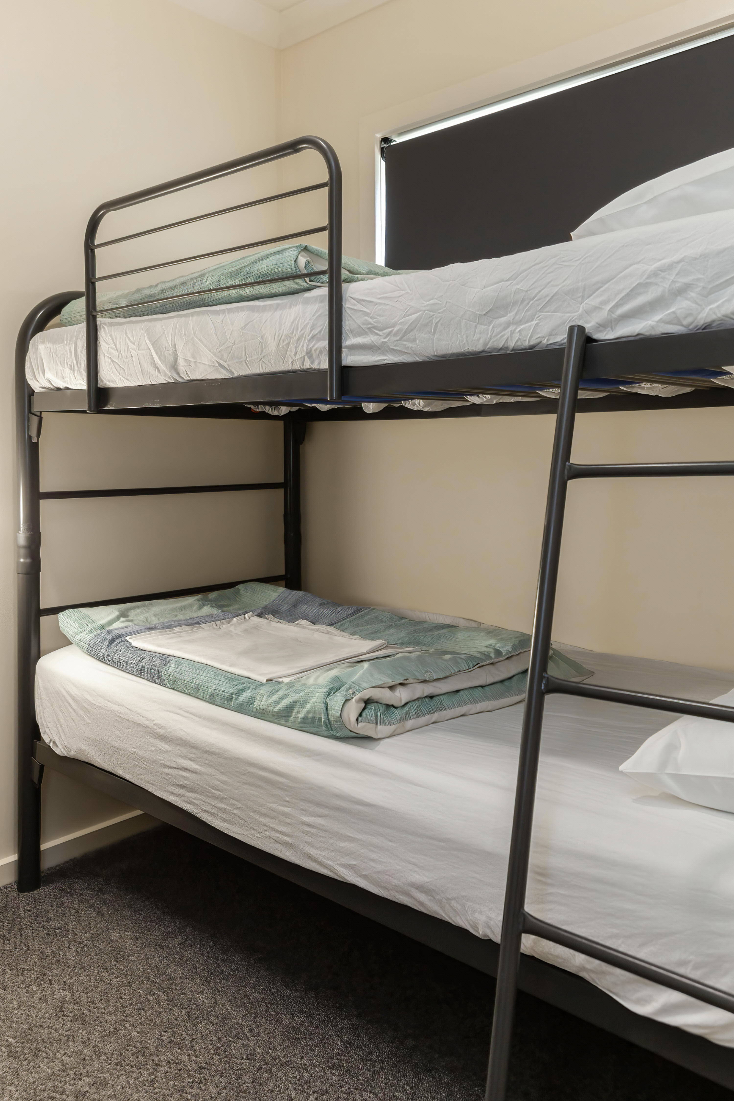 Australian standards relate to the use of bunk beds and state that "children under the age of 9 years are not permitted to sleep in the top bunk. Children must not play on top bunk" Please take this into consideration when making your booking.