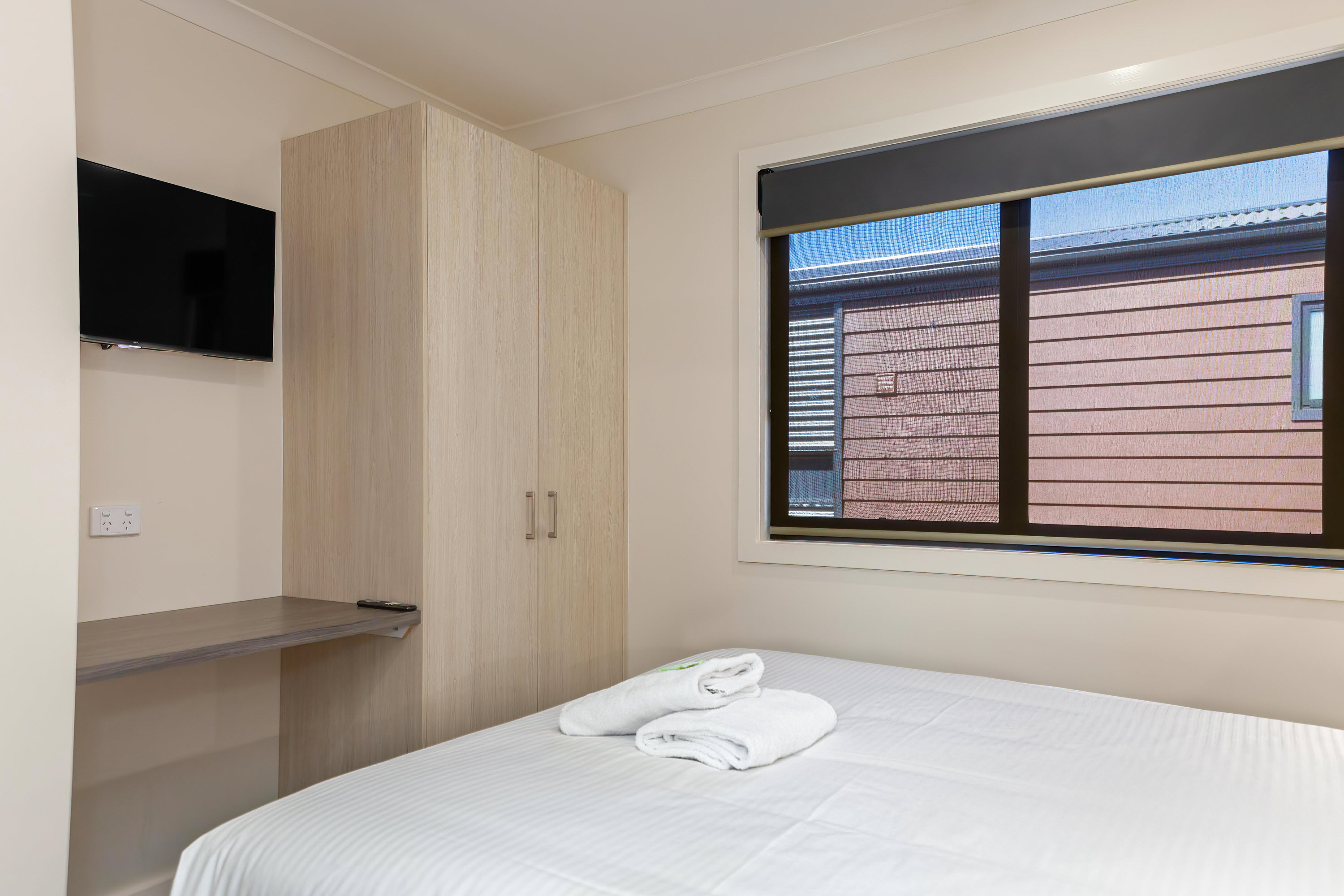 With a full kitchen in your very own cabin means you can cook up a fantastic feast or head out for a delicious bite to eat nearby. The shared area comes with reverse cycle A/C and a furnished deck overlooking the new and in progress turfed barbeque area.