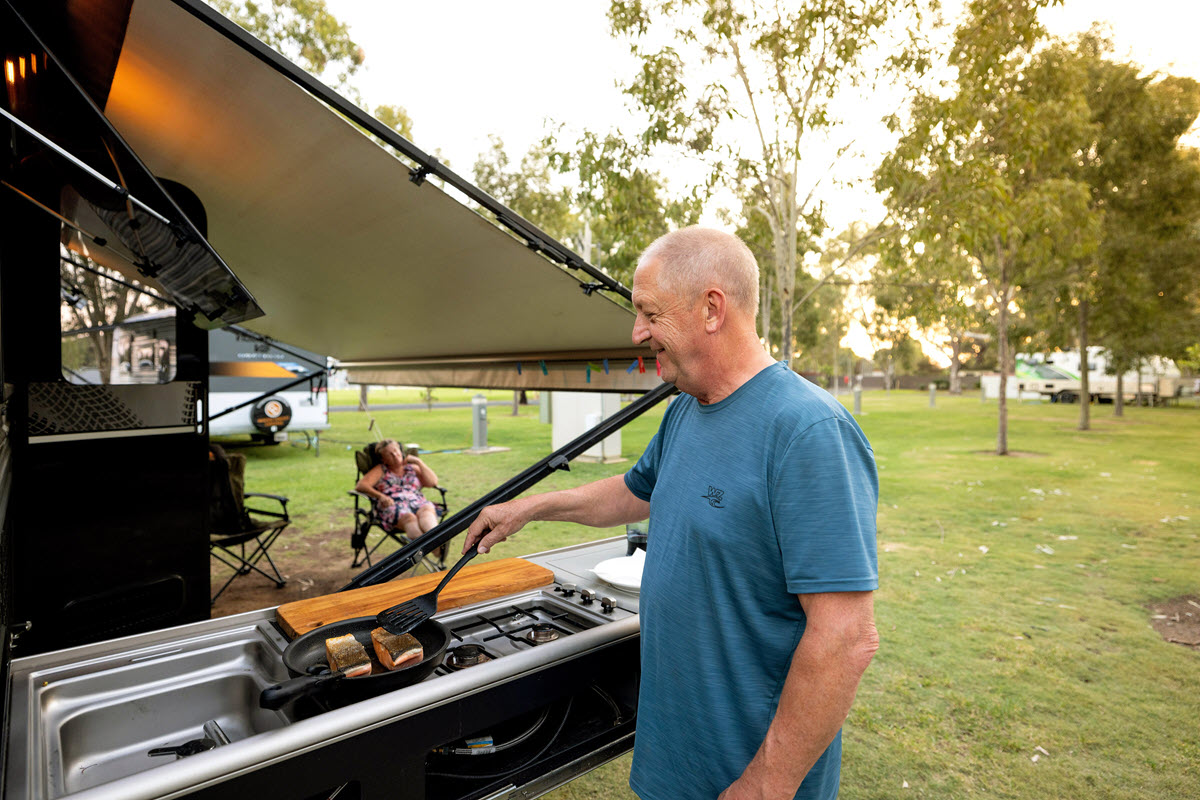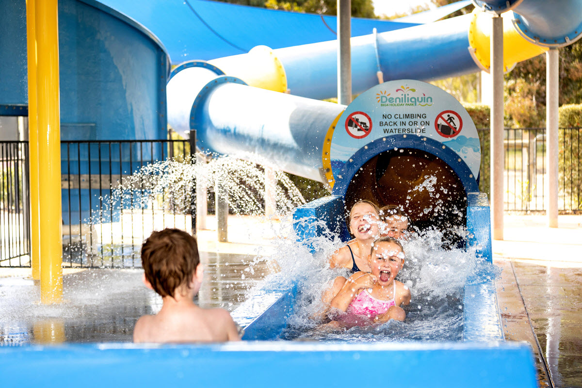 BIG4 Deniliquin Holiday Park is your perfect riverside escape in the heart of the Murray River region. Set right on the banks of the Edward River, our award-winning park offers two swimming pools (one heated year round), flying fox, adventure playground, a heated water splash park, bike pump track, giant jumping pillow, mini-golf, barbecues, two private pontoon boats for hire, tennis/basketball court, fishing, water sports, boating, skiing, a variety of cabin accommodation including accessible cabin options, glamping experiences plus plenty of powered and ensuite sites. To see and hear things as they are happening, keep up-to-date on our Tiktok, Facebook or Instagram profiles. All this and only 3.5 hours from Melbourne, 2 hours from Bendigo and just 50 minutes from Echuca. We look forward to seeing you soon from Frank, Lynda and the team!