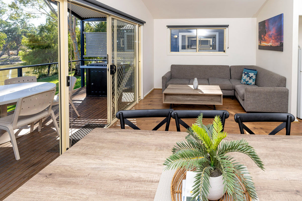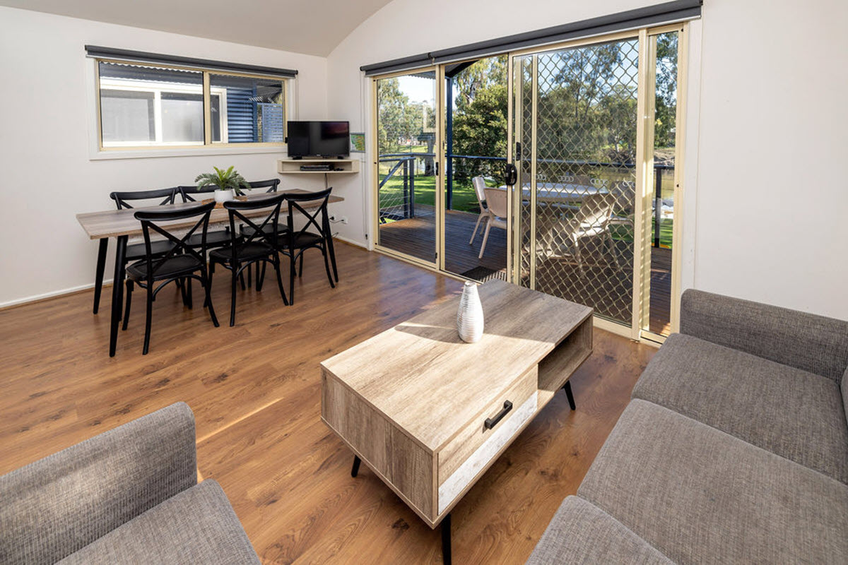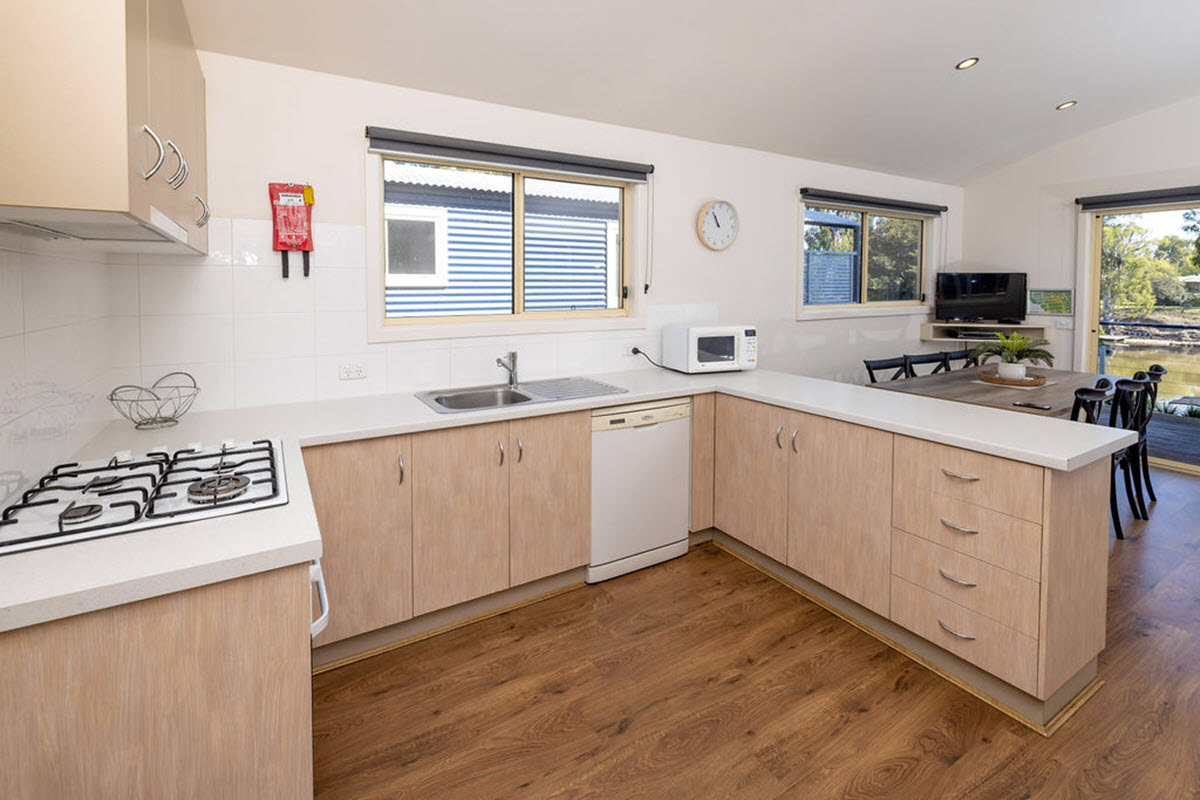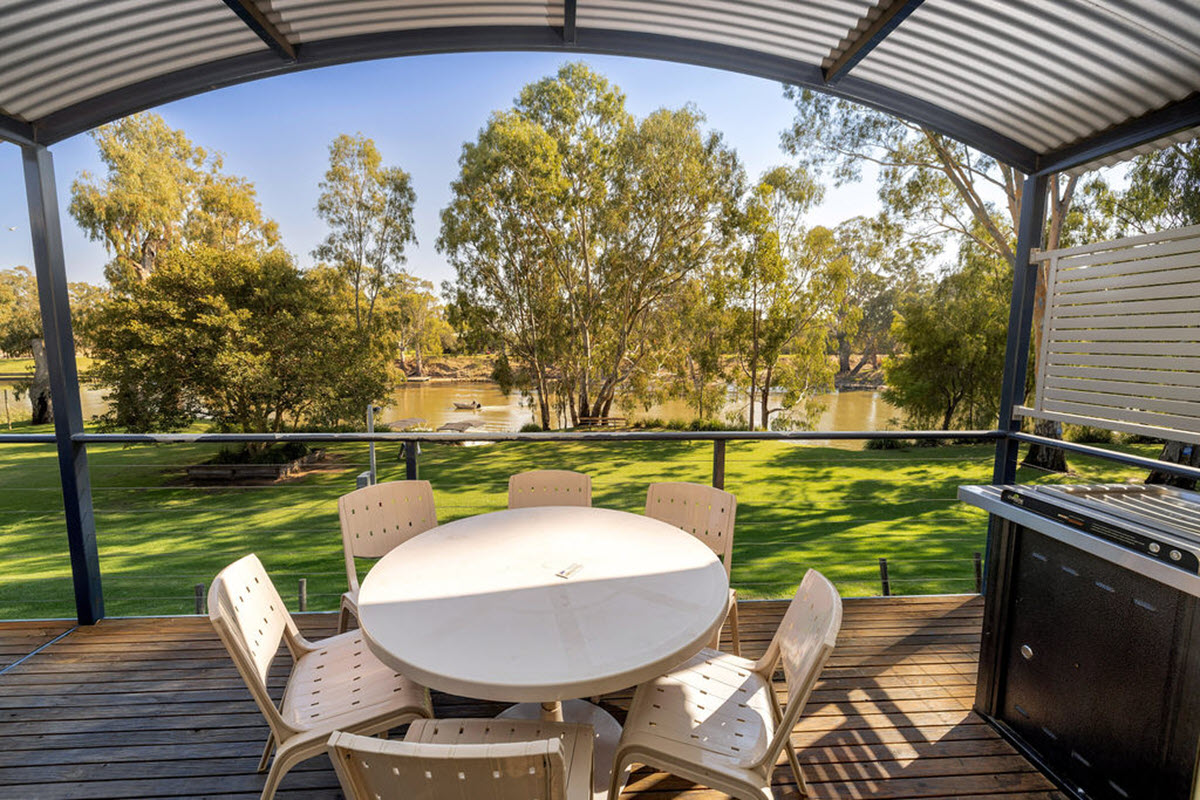 These are incredible! Our spacious self-contained cabins are elevated to catch the breeze and provide great views over the Edward River in the Murray River region. There is plenty of covered parking for cars and precious boats underneath.