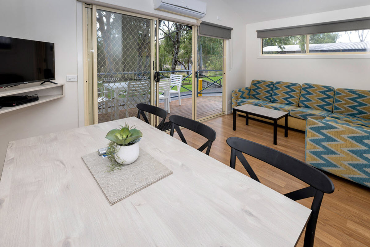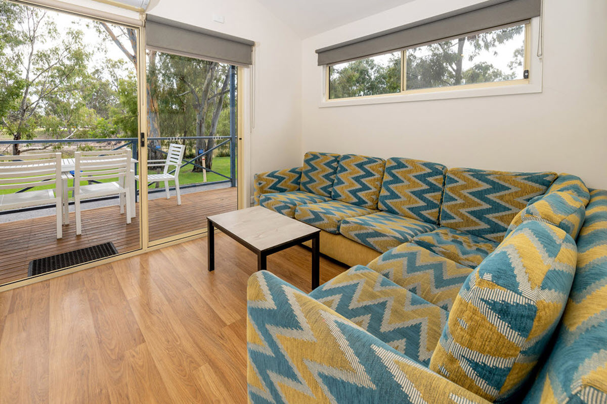 The Riverfront Deluxe Cabin is a spacious self-contained cabin with great views over the stunning Edward River.