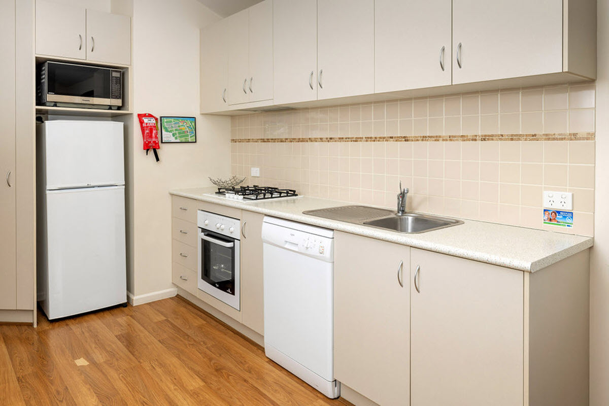 - You will appreciate the roomy kitchen with modern appliances including a full fridge, oven, gas cook top, dishwasher, microwave, plus all crockery and cutlery.