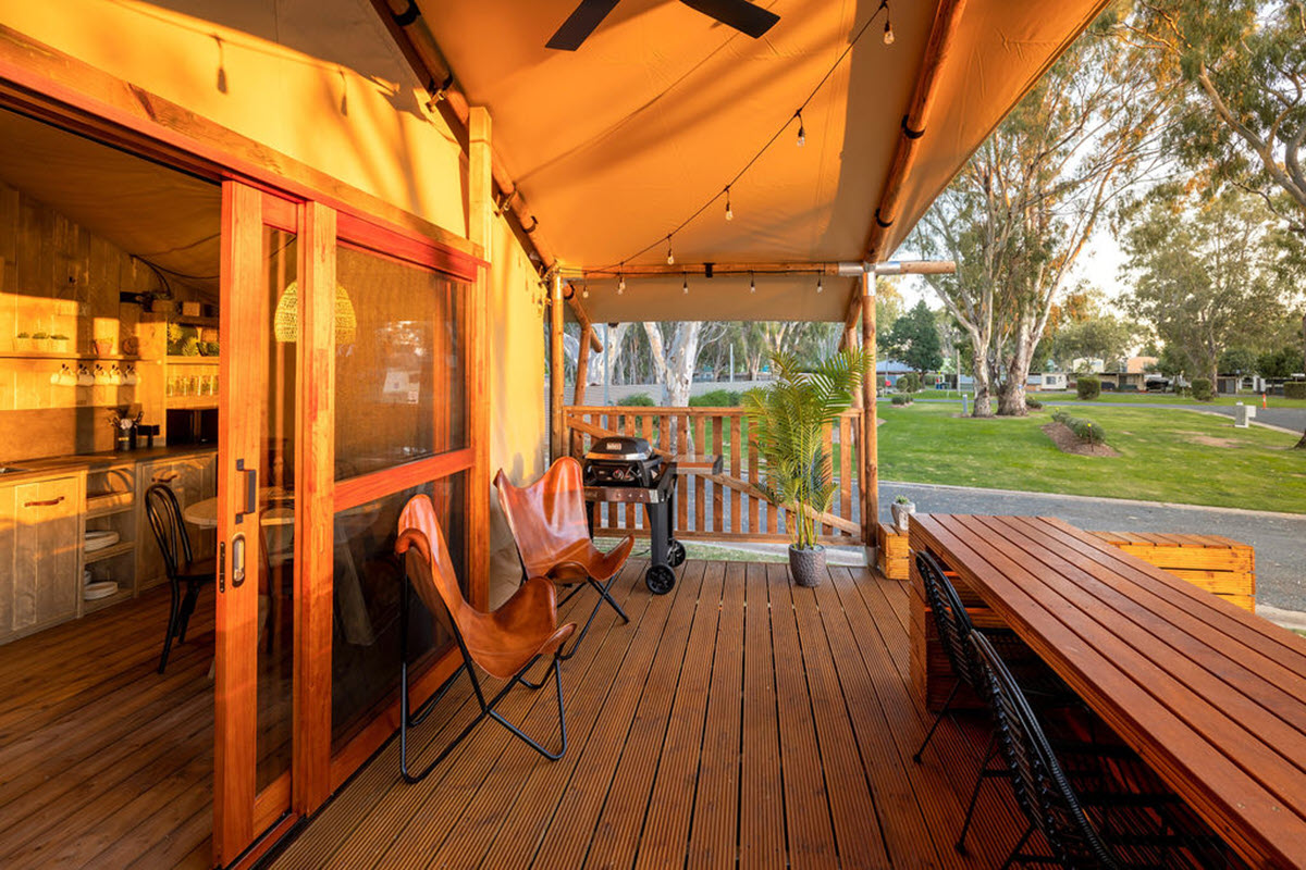 Glamping at BIG4 Deniliquin brings together the best of both worlds: the freedom of the great outdoors and the comfort of a boutique stay — all set right in the heart of the stunning Murray River region.