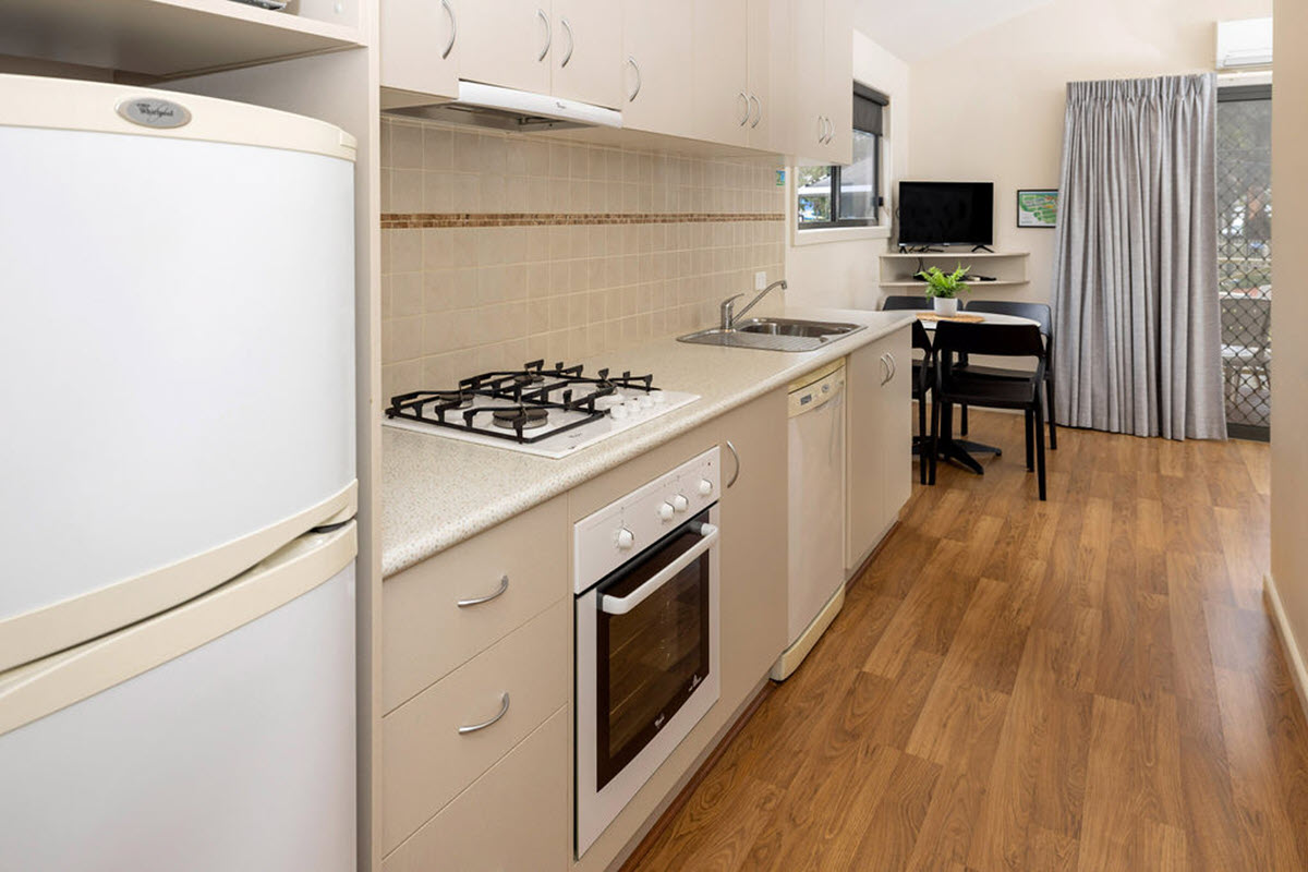 - Sleeping 6 with a quality galley style kitchen with everything you need including a full-size fridge, oven, gas cook top, microwave and dishwasher.