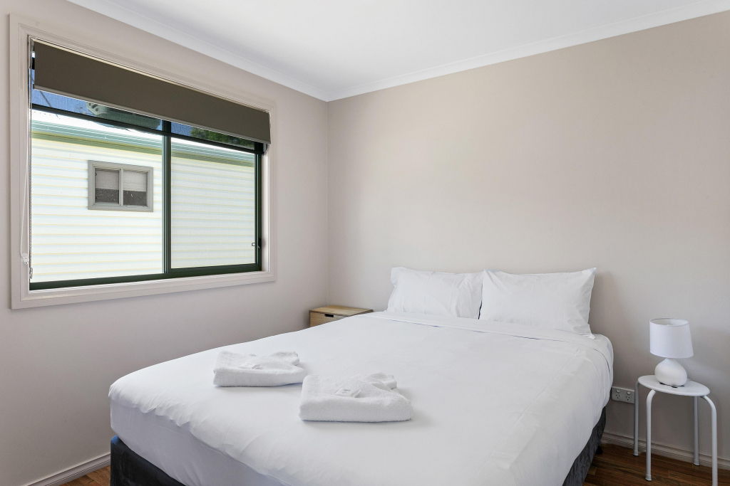 The Banksia Double Cabin consists of a queen bed in the main room with a large wardrobe and another queen bed in the second bedroom with a large wardrobe (including spare pillows).