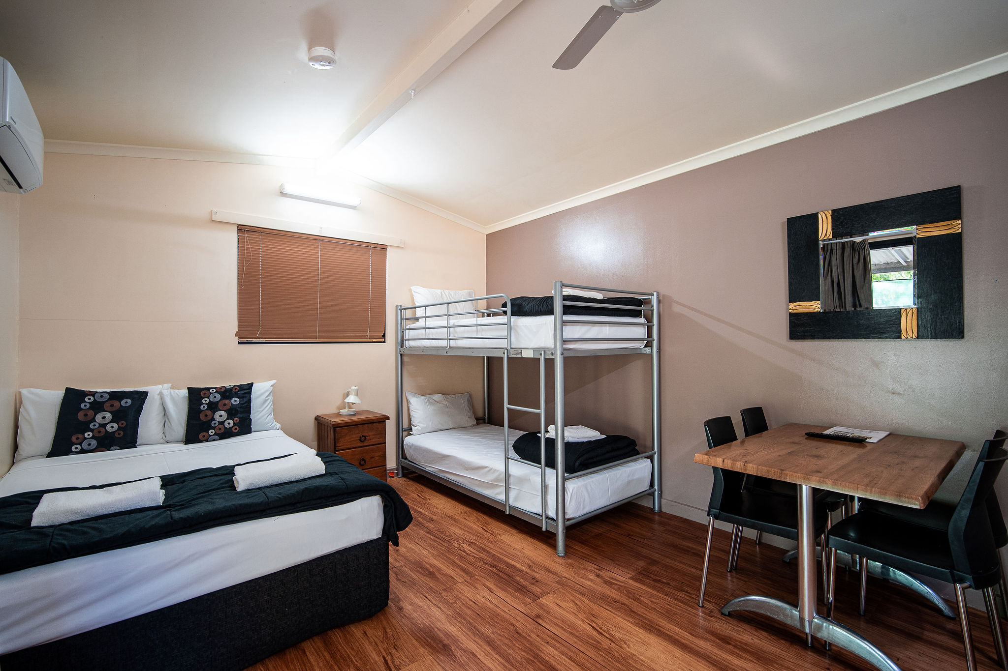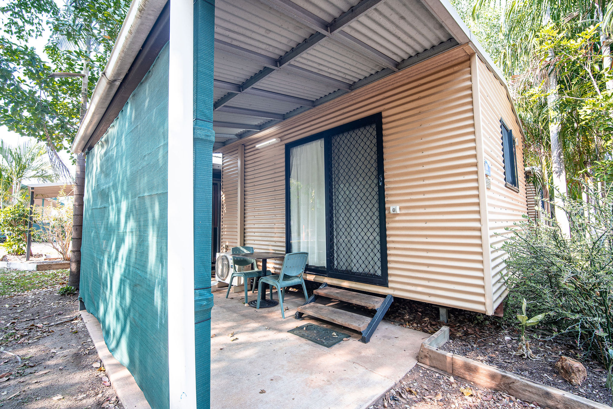 These cabins have a separate adjoining large private ensuite, including a laundry size room and separate toilet and shower. They offer a relaxing and private outdoor space including personal clothesline, garden and grassed area. This is an ideal getaway for short or long stays. Perfect for workers or families travelling on a budget. Popular as long-term rentals, as you can add your own washing machine for a small additional cost.