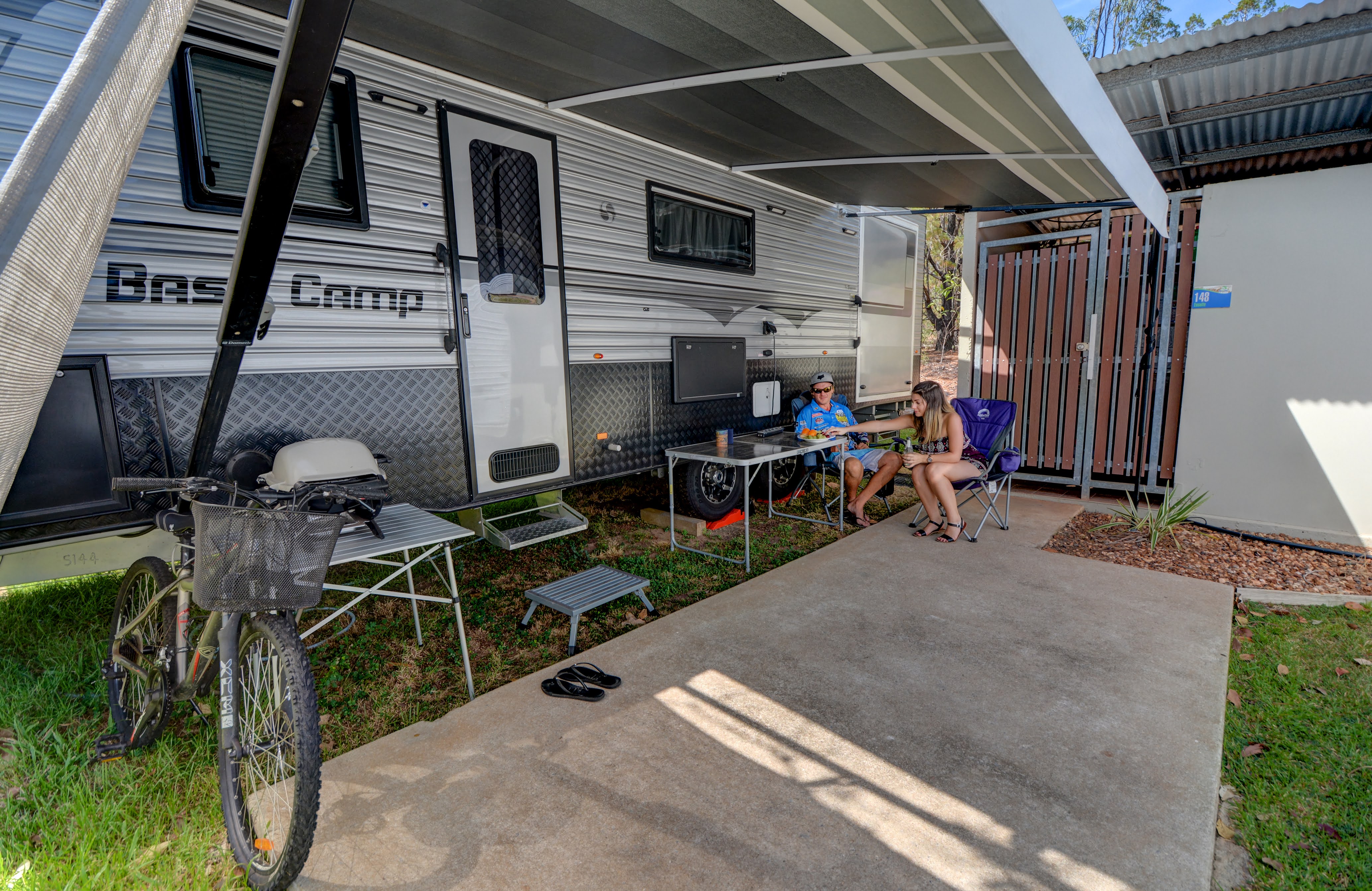 Just a short walk away from our Ensuite Powered Sites you will find the guest laundry, free BBQs and a fully equipped camp kitchen. The kitchen boasts a large fridge, hotplates, microwave, toaster, kettle and undercover seating. There is also a large TV in the area so you can keep connected.