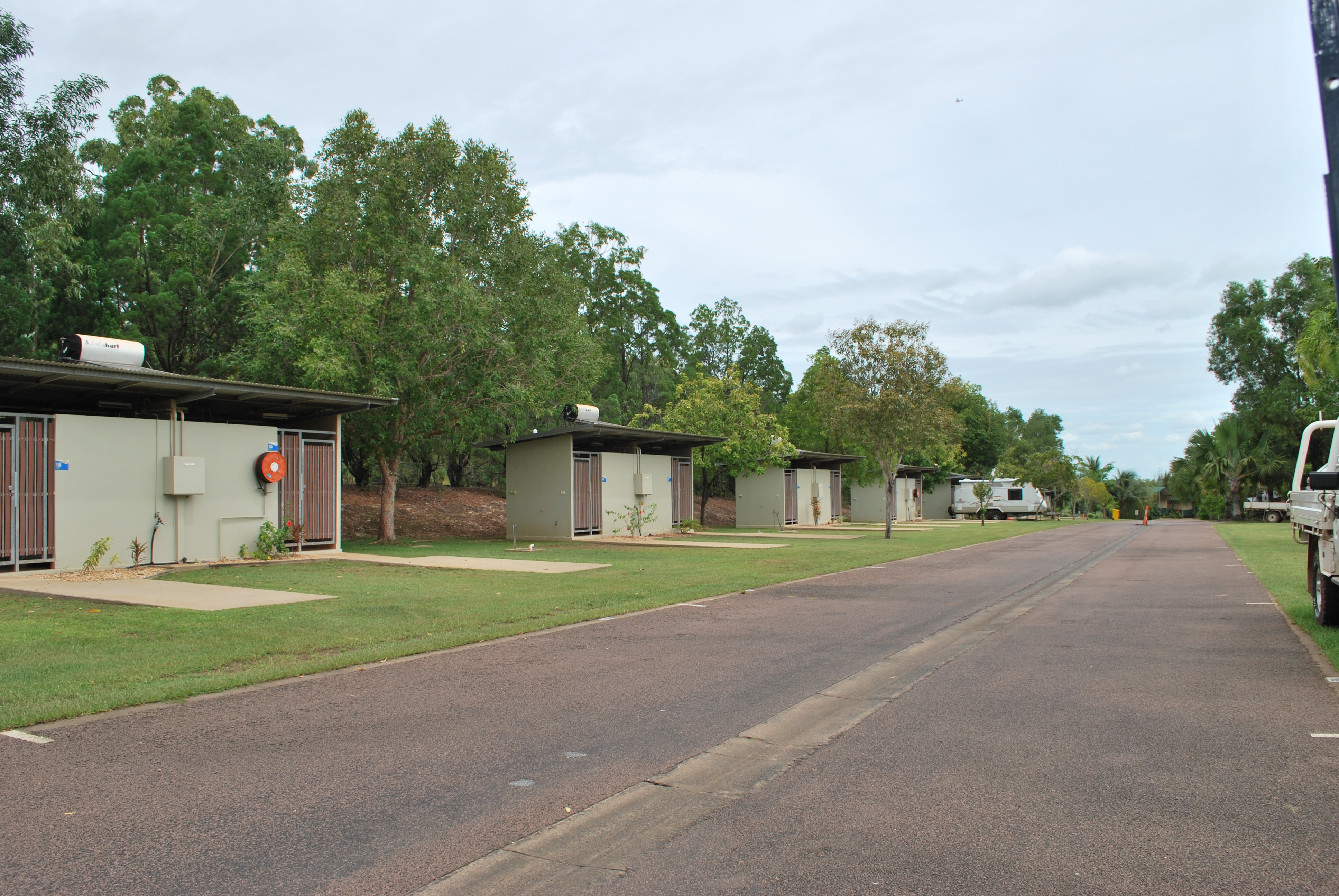 These sites have a level concrete slab and car space, and your own private large lockable ensuite. The Ensuites are roomy and each feature a shower, hand basin and toilet. There is water connection availability and plenty of space should you wish to bring your own washing machine. They provide a great space for extra storage and longer stays.