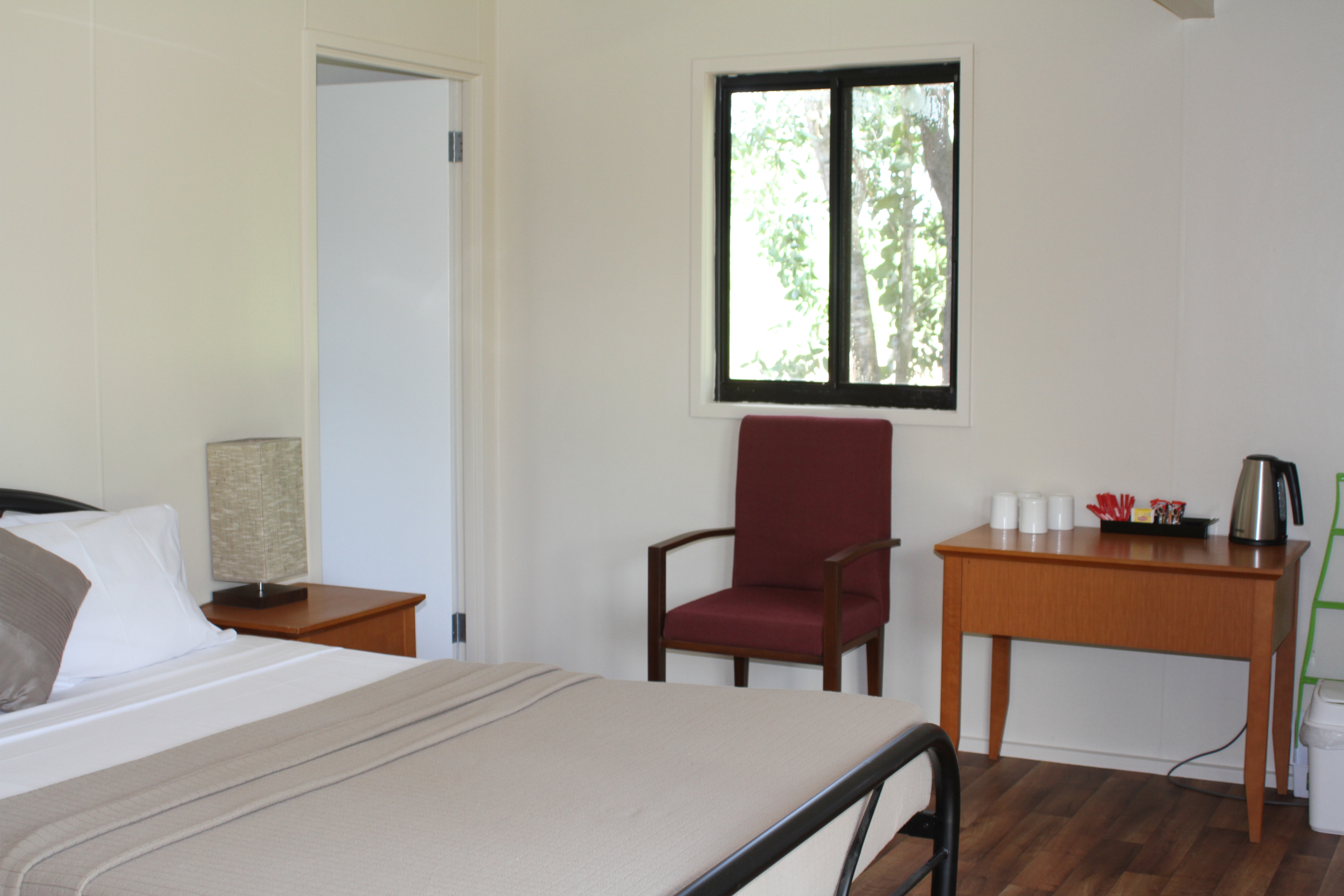 Two-bedroom bush bungalow with private bathroom. Fridge, tea/coffee making facilities, ceiling fans and air-conditioning with verandas overlooking the natural bushland. Access to the main swimming pool, camper’s kitchen and walking tracks. Boat hire, buggy hire and mountain bike hire are available at additional cost, inquire through reception.