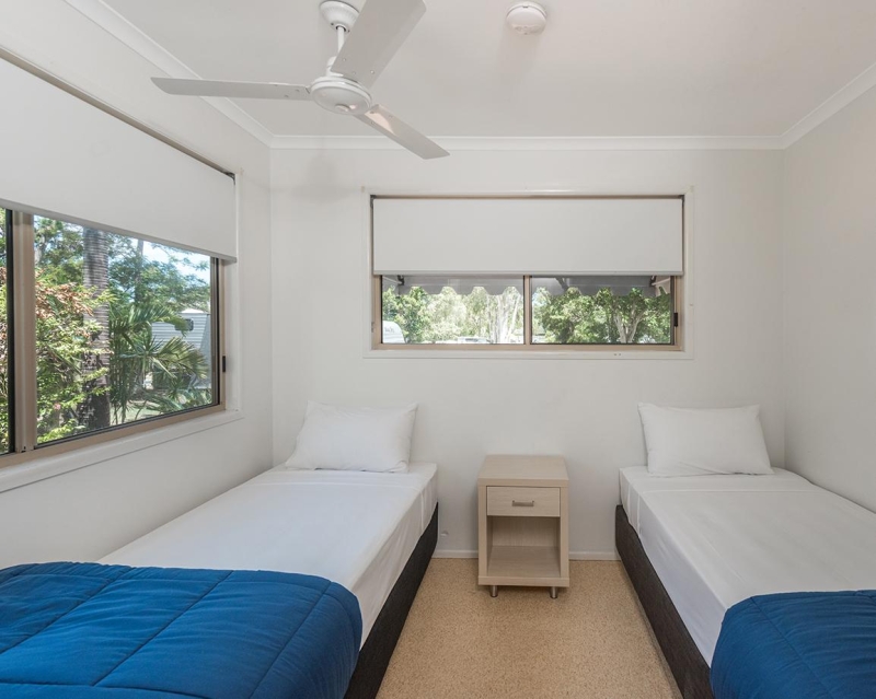 Located close to park facilities. Two bedding configurations. One queen bed and two single beds OR one queen bed and one single bunk bed.