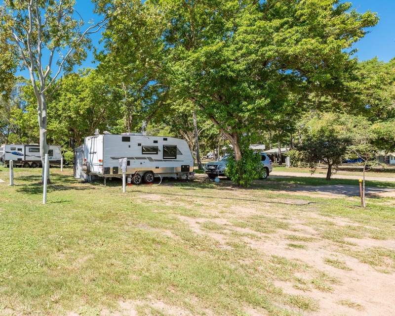 Powered grass site. Suitable for tents, caravans, motorhomes and campervans. Located close to amenities and camp kitchen.
