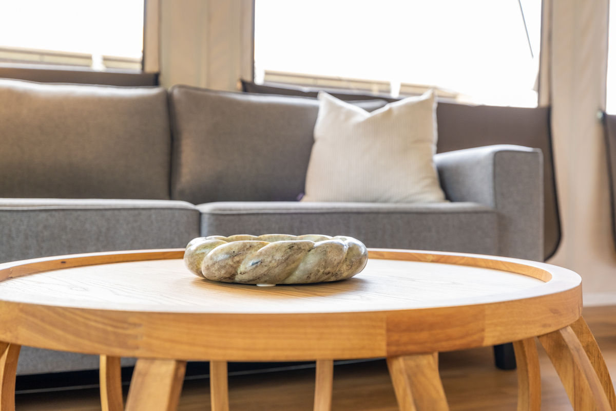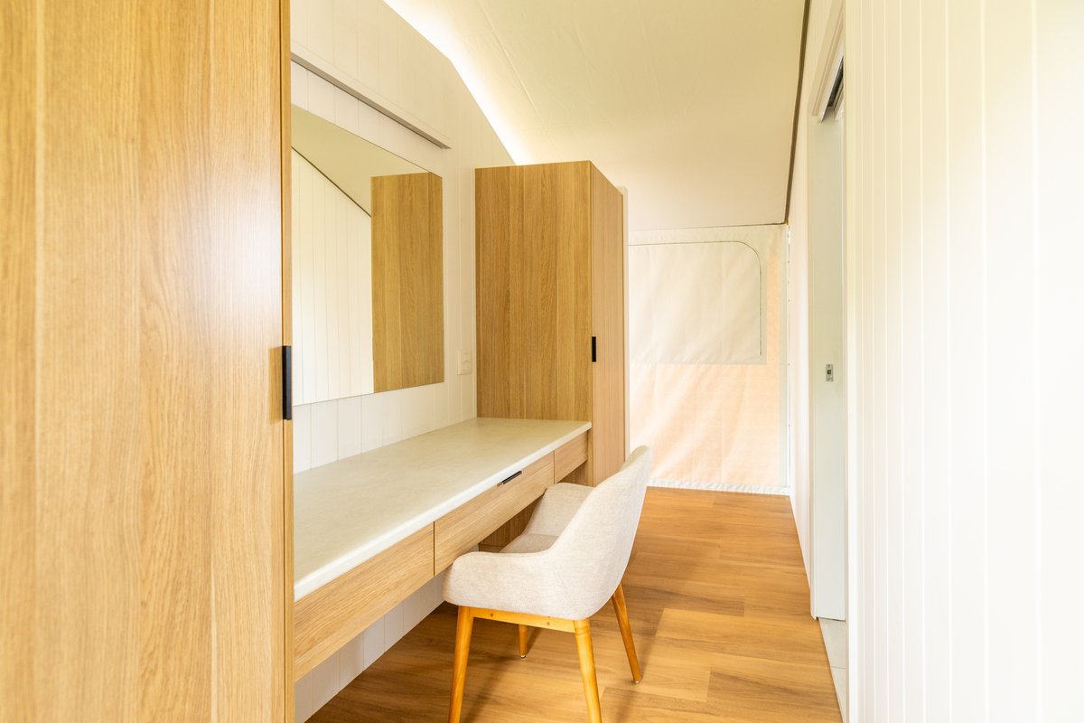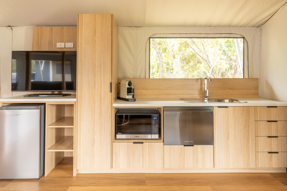 Nestled in a peaceful spot our glamping tents offer a simple yet comfortable retreat for couples or solo travellers looking to unwind in the great outdoors without all the fuss. The tent features a small balcony area with a BBQ, indoor seating area and basic kitchen facilities. Sleeping 2 guests with a super king bed. Complete with Nespresso coffee machine, and essential amenities to ensure a pleasant stay, our glamping tent provides a unique and memorable experience amidst nature. This room can accommodate up to 2 adults and an infant using existing bedding or porta cot.