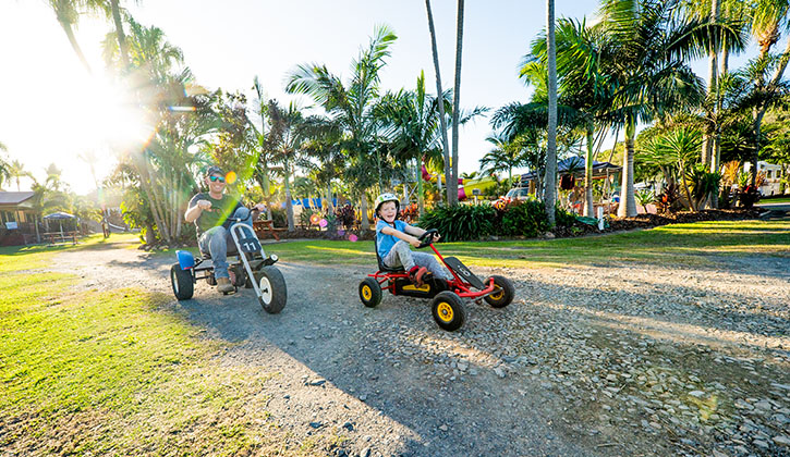 NRMA Capricorn Yeppoon Holiday Park is located on the Capricorn Coast, providing the ideal location to explore all the region has to offer including Great Keppel Islands, sandy beaches and the hinterland. An easy 15 minutes south of Yeppoon, your coastal getaway awaits and with our range of facilities such as saltwater swimming pool, bouncing pillow, camp kitchen, outdoor cinema, kids' playground, and pedal karts or e-bikes for hire. Enjoy our spacious caravan and campsites or relax in one of our many comfortable cabins, villas and cottages. This coastal paradise is just waiting to be explored, with the Southern Great Barrier Reef and lush tropical rainforests at your doorstep you can do as little or as much as you like.