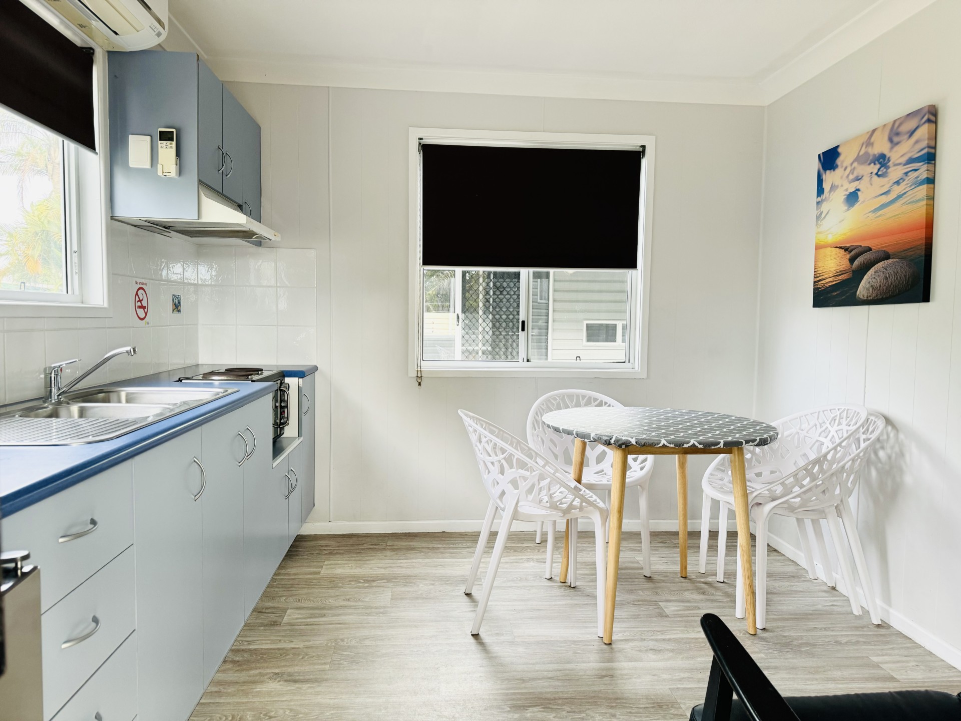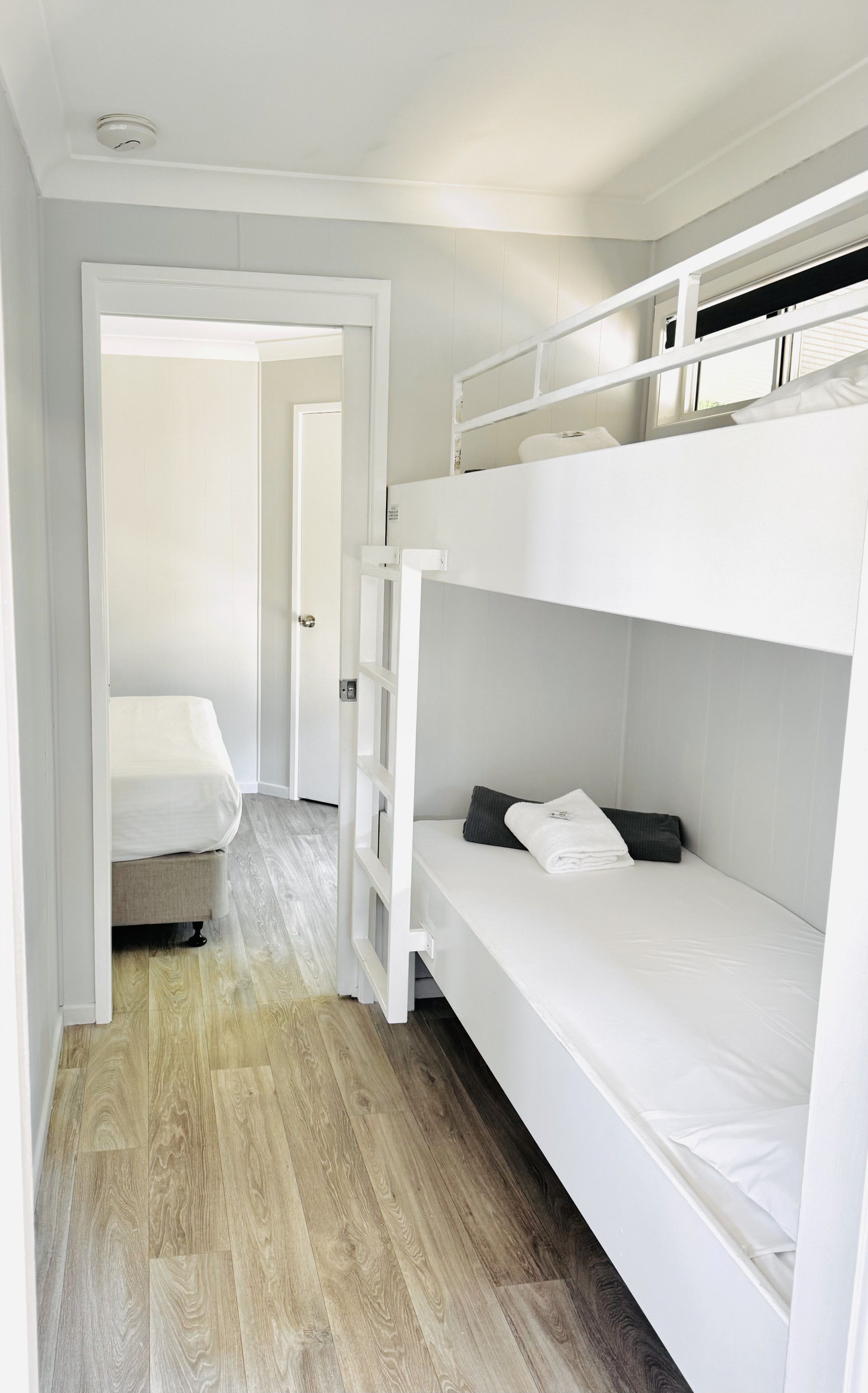 This cabin includes an ensuite, kitchenette, aircon and x2 TVs. Sleeps 4 people.