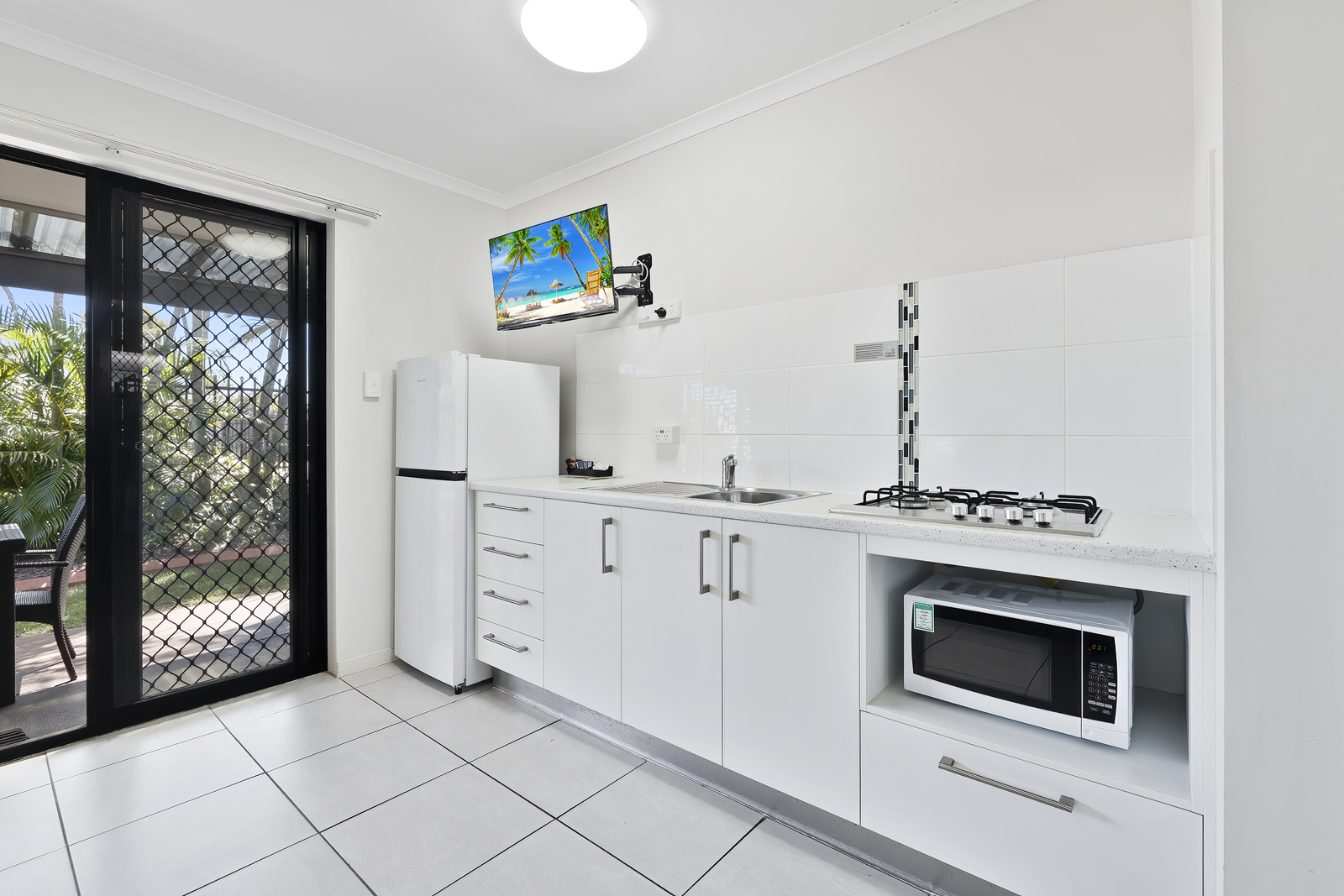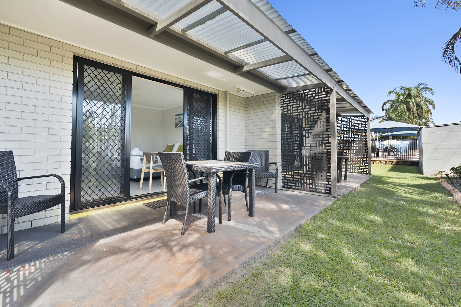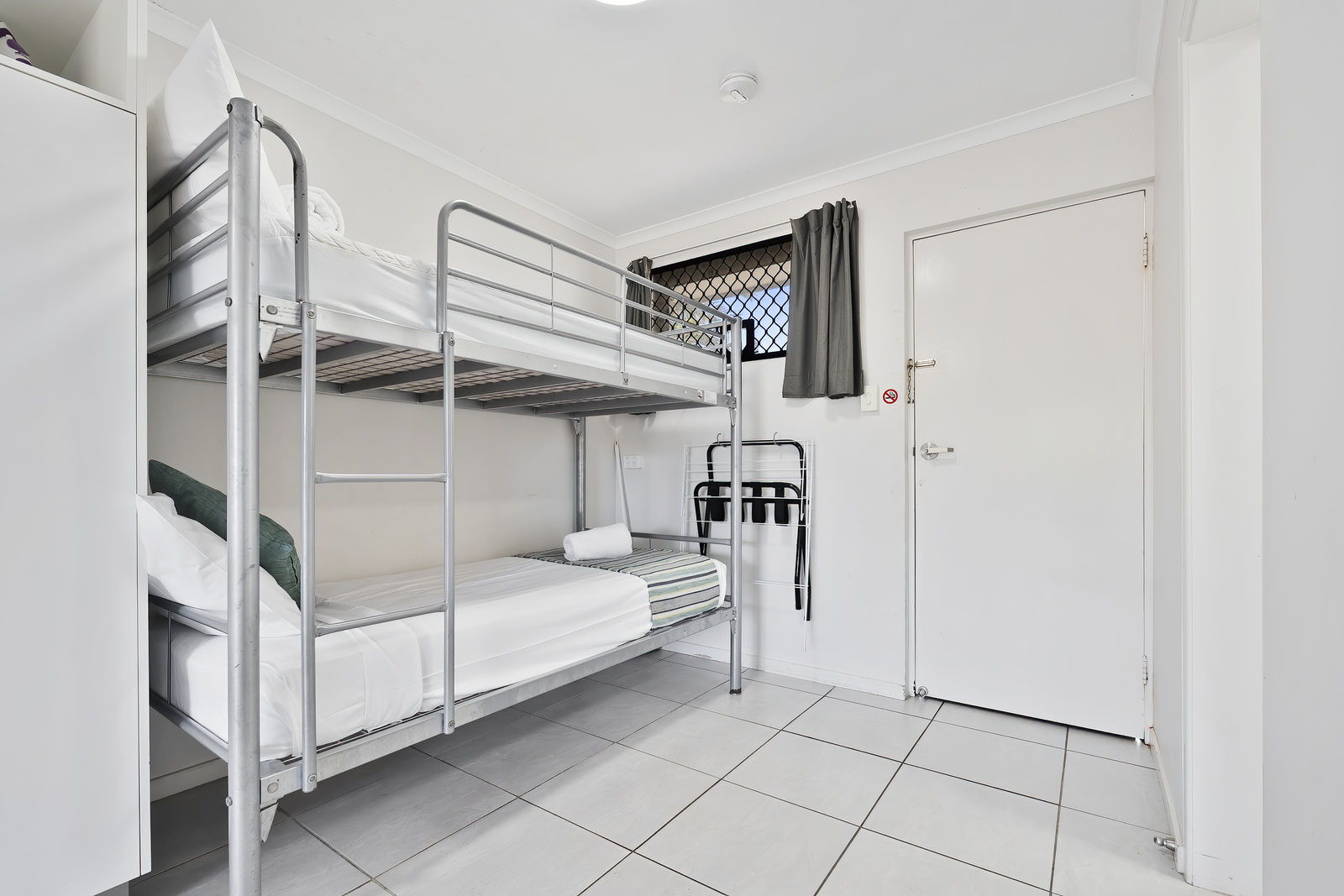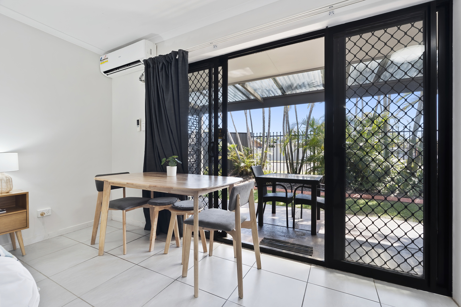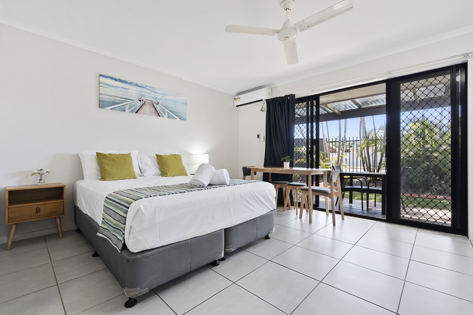 The perfect stay for a family on a budget. Our Studio Units sleep up to four guests with a queen bed and bunks in the open plan space, as well as an ensuite bathroom, kitchenette, and undercover outdoor patio, located right next to the pool and walking distance from the beach and restaurants.