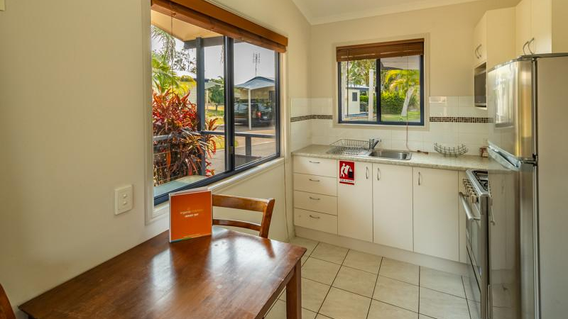 Enjoy a comfortable stay close to Torquay Lakes. Our 1 Bedroom Superior Cabins sleep two guests with a queen bed in the main bedroom as well as a bathroom, living area, kitchen, and private deck.