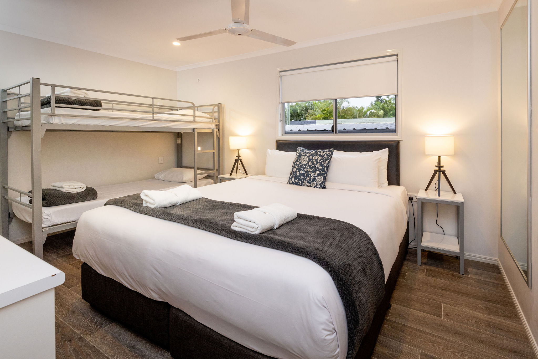 Looking for THE perfect place to hold your family or group get together? Each of our 3 Bedroom Retreats sleep 10 - 2 x king split beds (4) & 3 x bunk beds (6). We have 3 of these Retreats so that's a BIG4 sleepover for 30 friends &/or family.