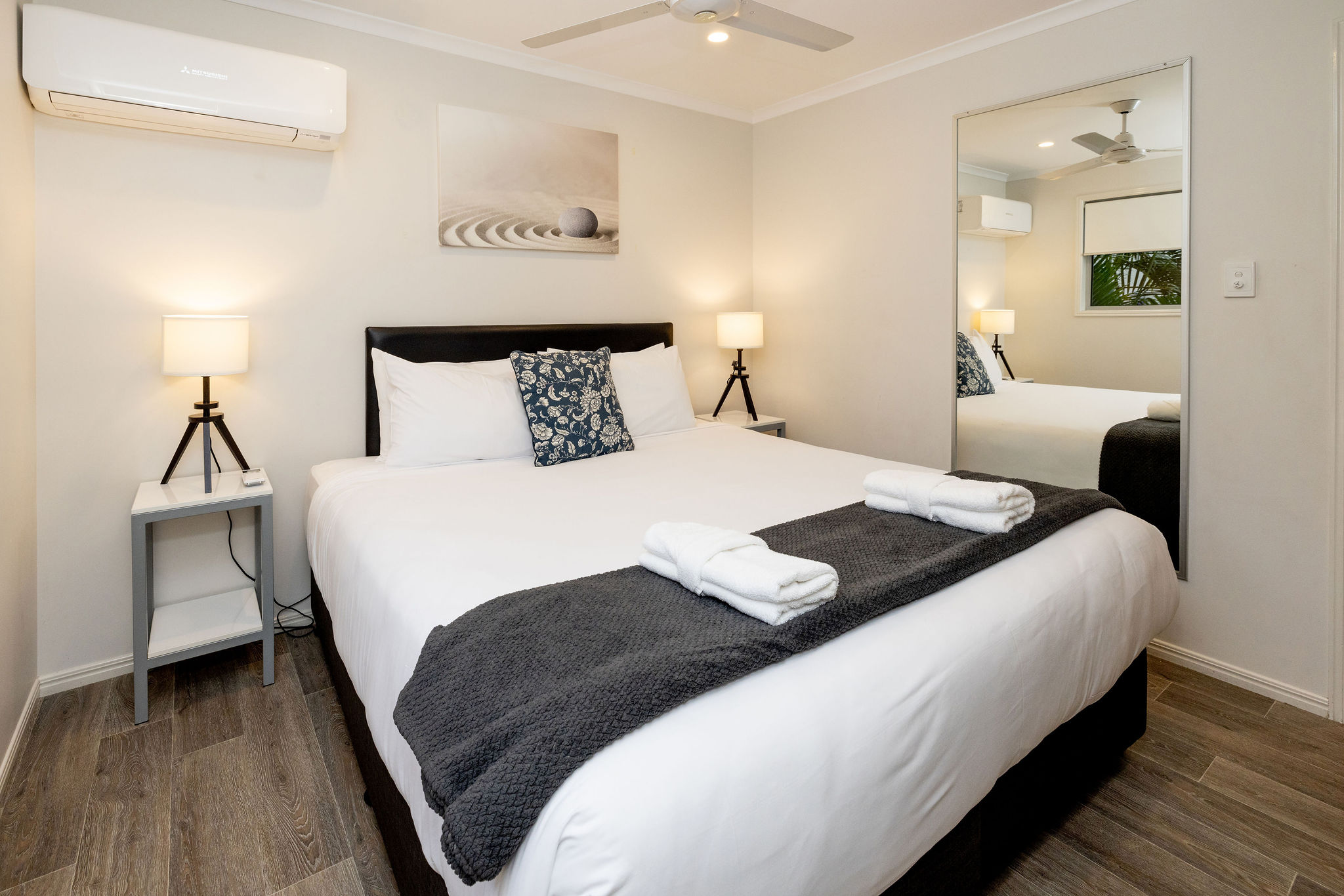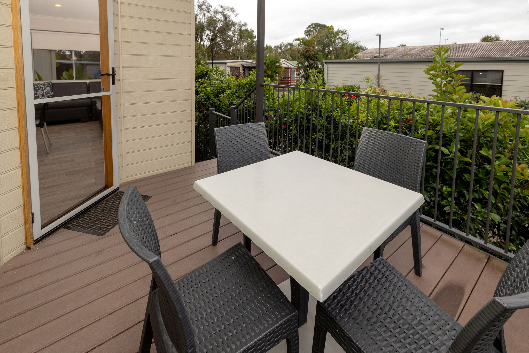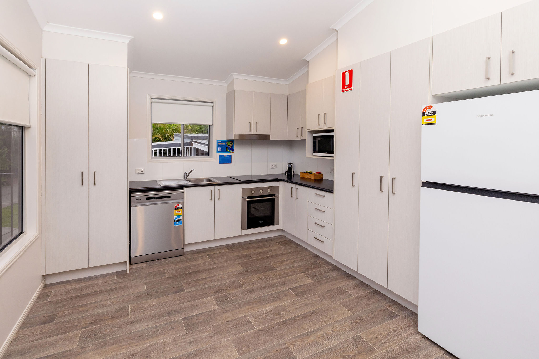The 3 Bedroom Retreats are located in quiet corners of the park and are convenient to our resort style pool and the famous poolside Nibbles Café. After your swim, relax on the front veranda or come inside to the air-conditioned comfort.