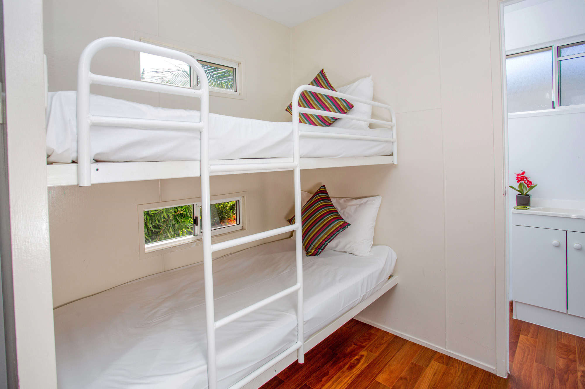 Great for a budget conscious family getaway. With an ample sized verandah to relax on at the end of the day, the minimalist designed interior makes it a breeze to cook up family meals and clean up afterwards. Our cabins are a peaceful retreat to enjoy your Gold Coast holiday experience, yet only a minute away from all the action of the Fun Forrest and 32 acres of wide-open spaces for the kids to run ragged playing footy, a game of cricket or enjoy a family picnic in the great outdoors.