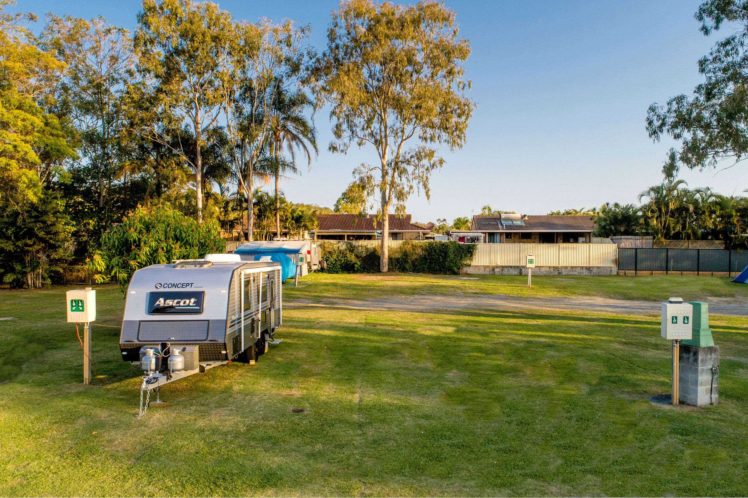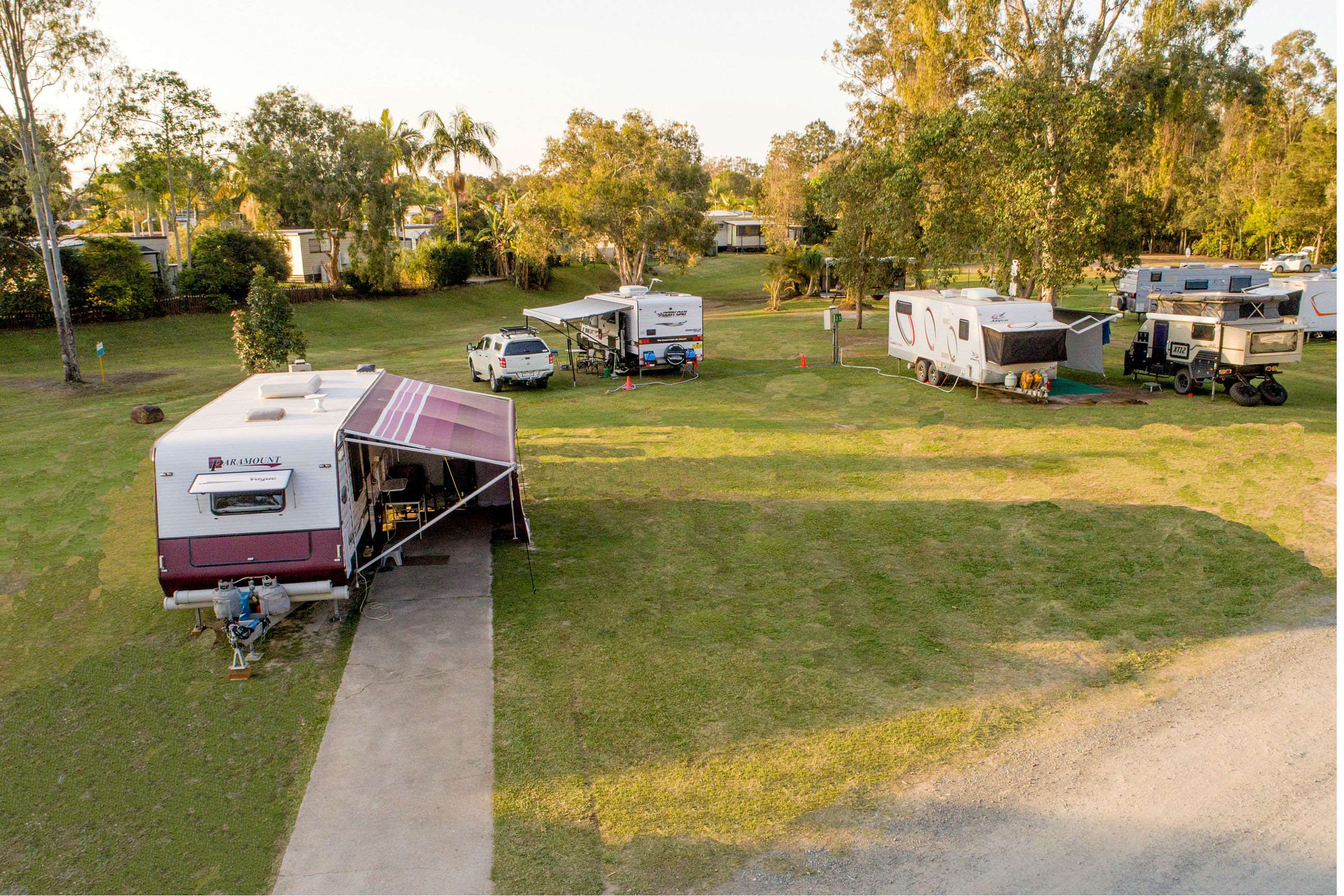 Our Riverwalk camp grounds sites are large and inviting near to our Riverwalk BBQ area and right next to the beautiful Saltwater Creek so you can set up and then throw in a line! The Riverwalk area is also adjacent to our famous Roo paddock. Most mornings as the sun rises we have the pleasure of our resident family of kangaroos who happily graze on our acres of grassy paddock. There is often a little troupe of Koalas who live with us and can be spotted when the mood takes them. All in all it’s a wonderful spot to pull up and relax. In the Riverwalk area we welcome small fires in above the ground braziers (subject to fire bans).