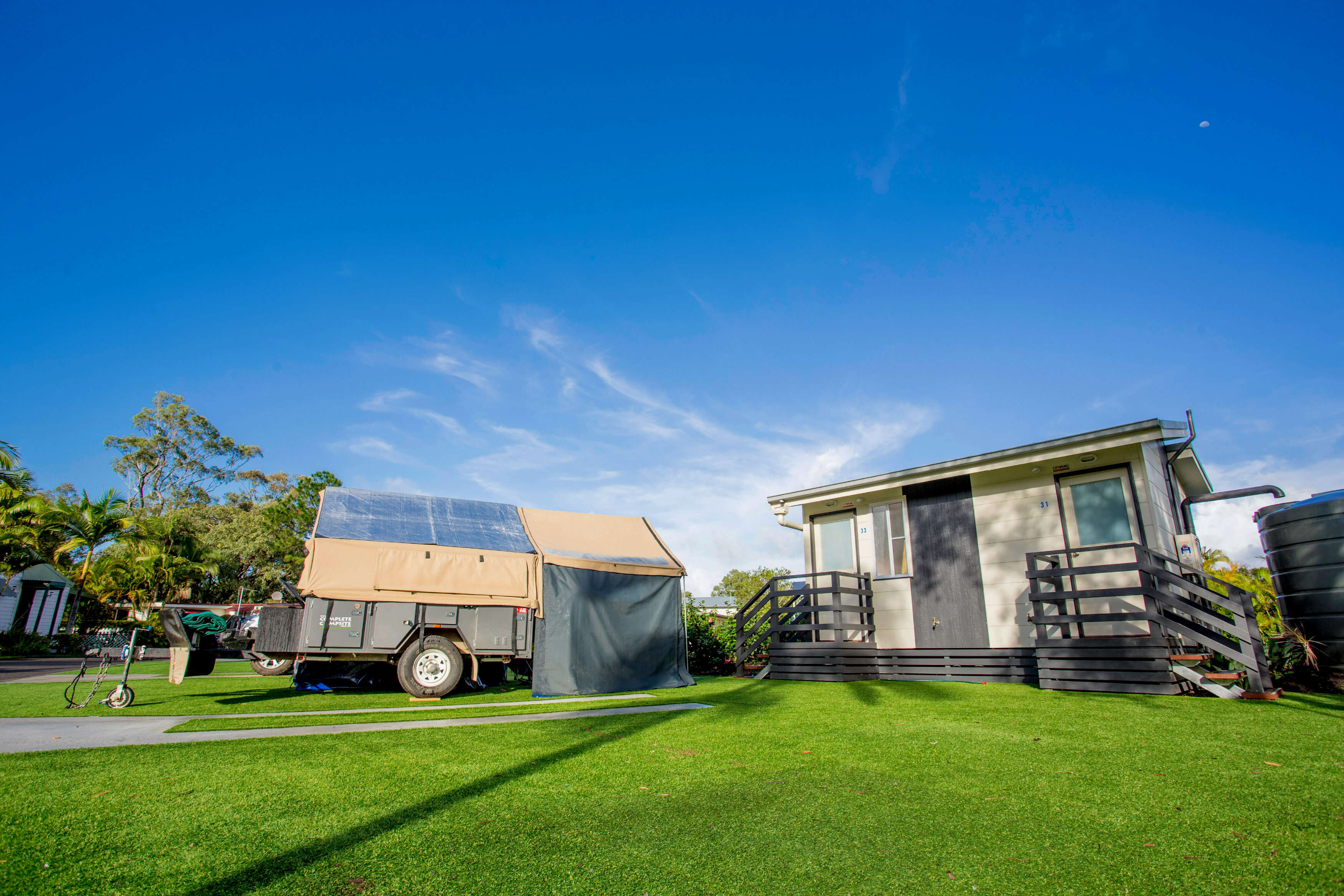 Modern Standard Ensuite Sites for the camping comfort you deserve and sleep up to 6. The following equipment type is welcome on these sites: Motorhomes, Vans and Caravans. We specially designed and constructed these Ensuite Sites for your Motorhome, Van or Caravan. With the choice of slab or grass these standard ensuite sites are very popular. The slab sites have the gentlest of grading on the sides to ensure good draining for dry feet but in response to requests from our loyal Camper Trailer crowd, we also have a few standard ensuite sites that are grass only. Please let us know when you book if you are after a slab or grass ensuite site (Whilst will try to meet your request we cannot guarantee that your preference can be met). We know size is important, so please tell us the size of your rig & drawbar when you book to allow us to allocate the most appropriate site. ** Please note that we do not allow any fires on these sites.