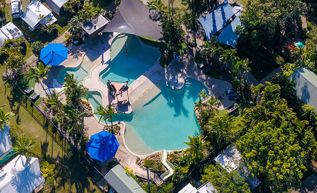 Located on the fabulous Gold Coast, NRMA Treasure Island Holiday Resort offers the ultimate Queensland holiday experience! Our pet friendly gold coast caravan park is situated just 10 minutes north of Surfers Paradise and is centrally located between all major theme parks including Dreamworld, Movieworld, Wet n' Wild and Seaworld. Stay your way in a comfortable cabin or villa, relax in a glamping tent or enjoy the outdoors on a Gold Coast camping or caravan site. We also have wheelchair-accessible accommodation and pet‑friendly accommodation options available. A treasure trove of fun awaits; make new friends at our year-round kids’ club, swim in our four resort-style pools and the kids will love the waterpark, playgrounds and mini golf. We’ve even got a licenced on-site bistro for meals together on your holiday.