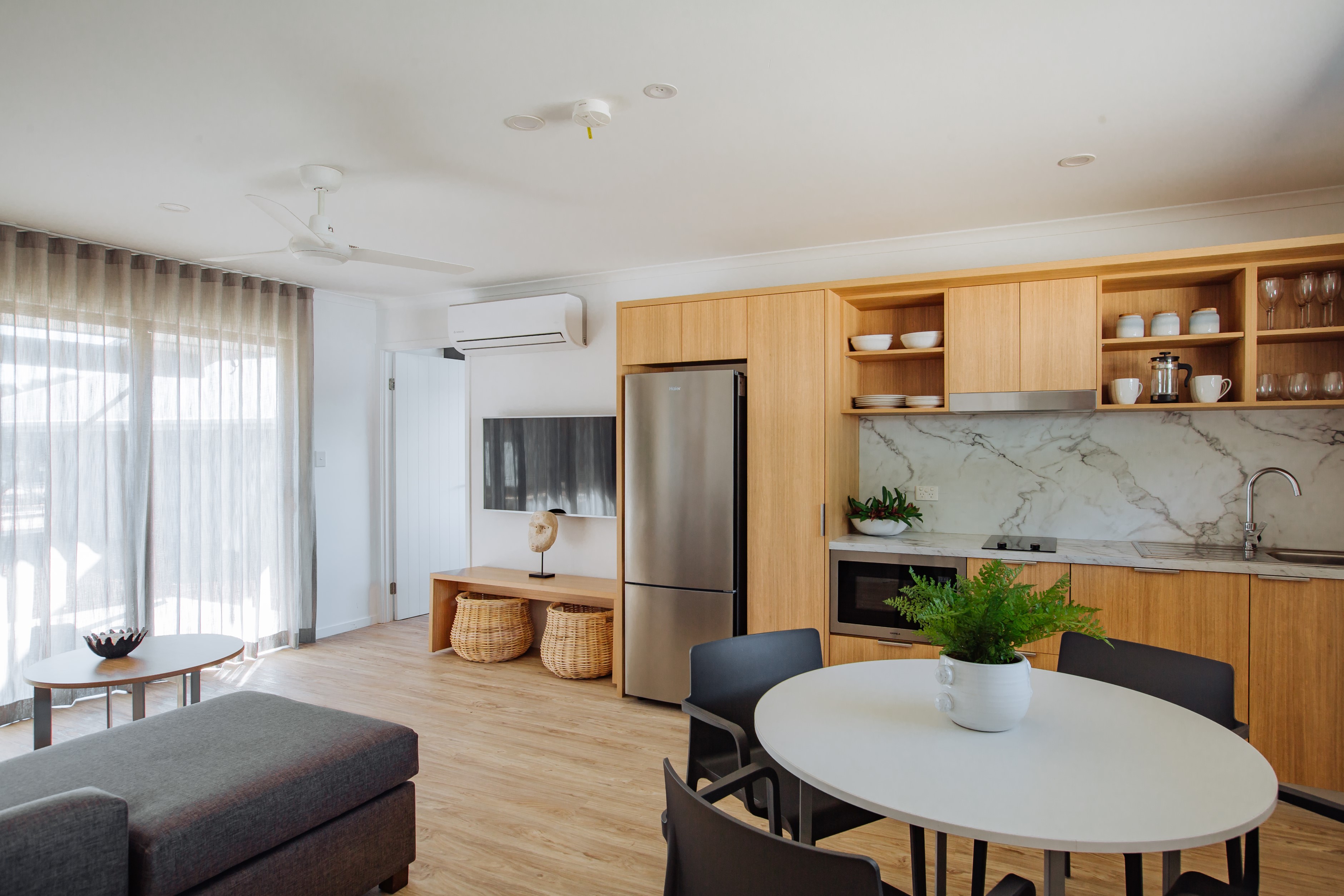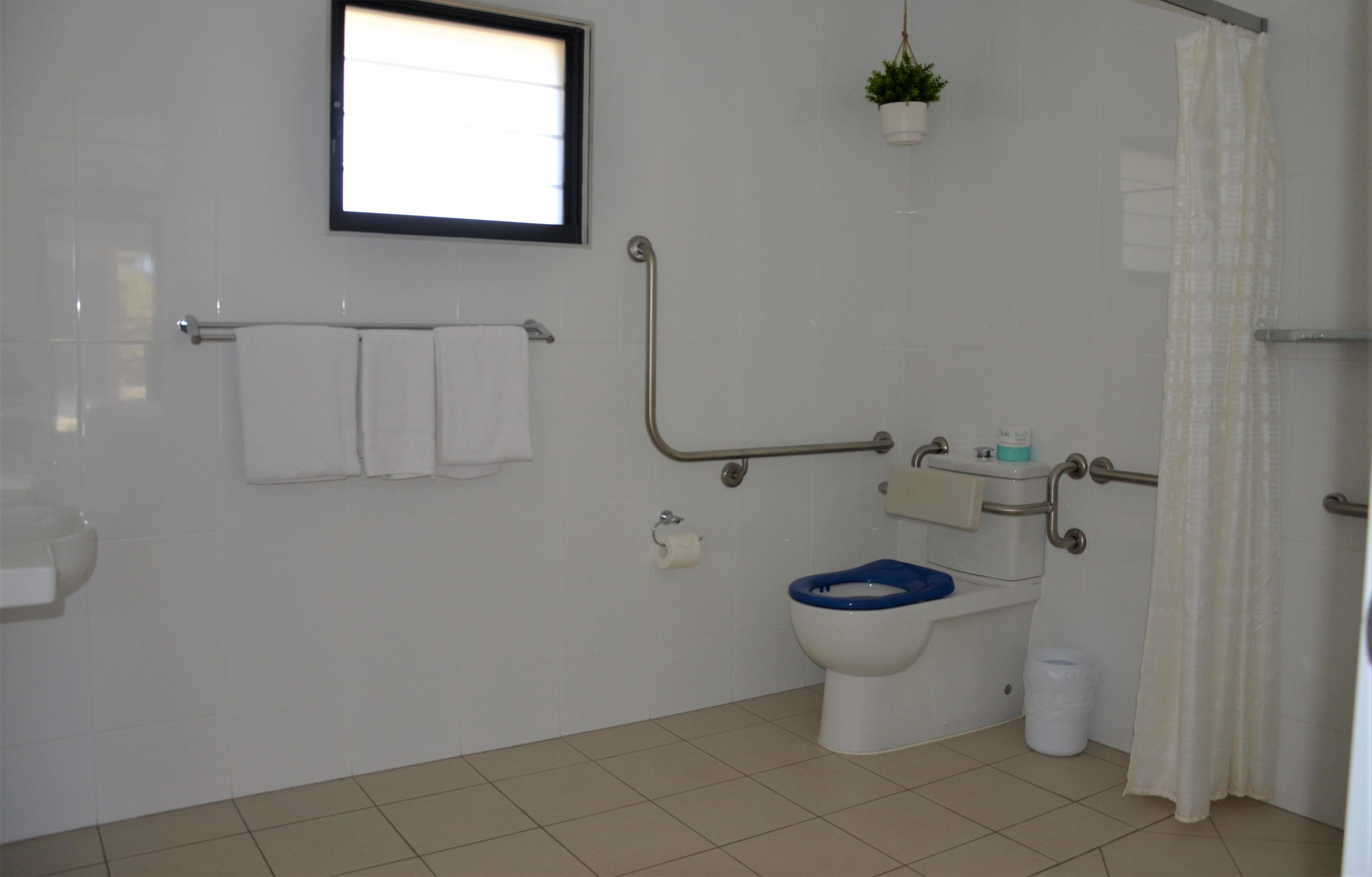 The 2 Bedroom Deluxe Gardenview Accessible Villa is perfect for longer family stays with two separate bedrooms; one fully accessible bathroom featuring wider door access, open plan shower, railings and wheelchair accessible basin. The 2 Bedroom Villa includes a separate open plan kitchenette, dining area and living room with TV opening out to a private alfresco dining area for outdoor family meals. This villa type includes 1 car parking space outside the main villa door.