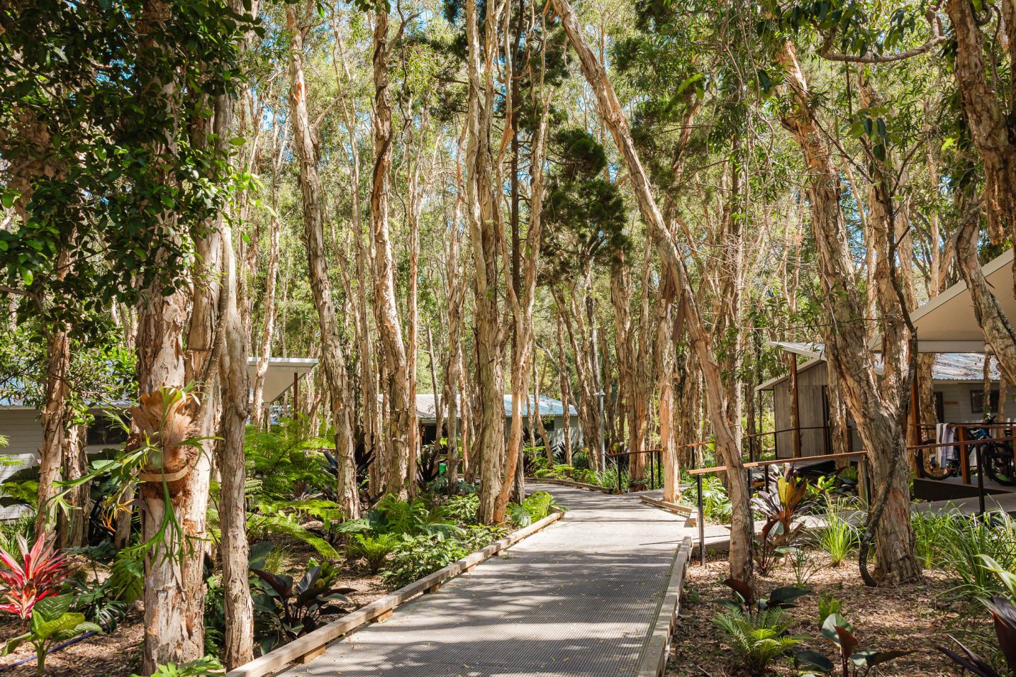 The 2 Bedroom Deluxe Eco Villa is perfect for longer family stays with two separate bedrooms (1 accessible), sleeping up to 4 people. These new villas are spaciously placed in a secluded and quiet area in amongst the cool canopy of existing trees. No guest vehicles are permitted beyond the Eco Villa parking area which ensures added safety for children playing in the area; boardwalk access to each villa. This Villa includes a separate open plan kitchenette, dining area and living room with TV opening out to a private alfresco dining area for outdoor family meals.