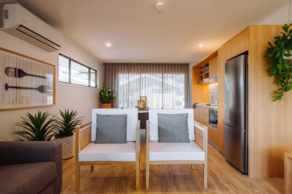 The 3 Bedroom Poolside Villa, sleeping 10 is ideal for larger bookings with a spacious floor plan and everything you will need for the ultimate resort-style living. Each villa features a private entry courtyard, open plan dining, kitchenette and living area with a Smart TV opening out to a secluded alfresco dining area perfect for outdoor meals. Enjoy a family getaway in scenic surroundings with amazing facilities to keep everyone entertained!