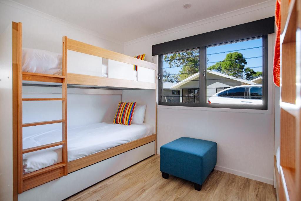 The 3 Bedroom Waterview Villa, sleeping 10 is ideal for larger bookings with a spacious floor plan and everything you will need for the ultimate resort-style living. Each villa features a private entry courtyard, open plan dining, kitchenette and living area with a Smart TV opening out to a secluded alfresco dining area perfect for outdoor meals. Enjoy a family getaway in scenic surroundings with amazing facilities to keep everyone entertained!