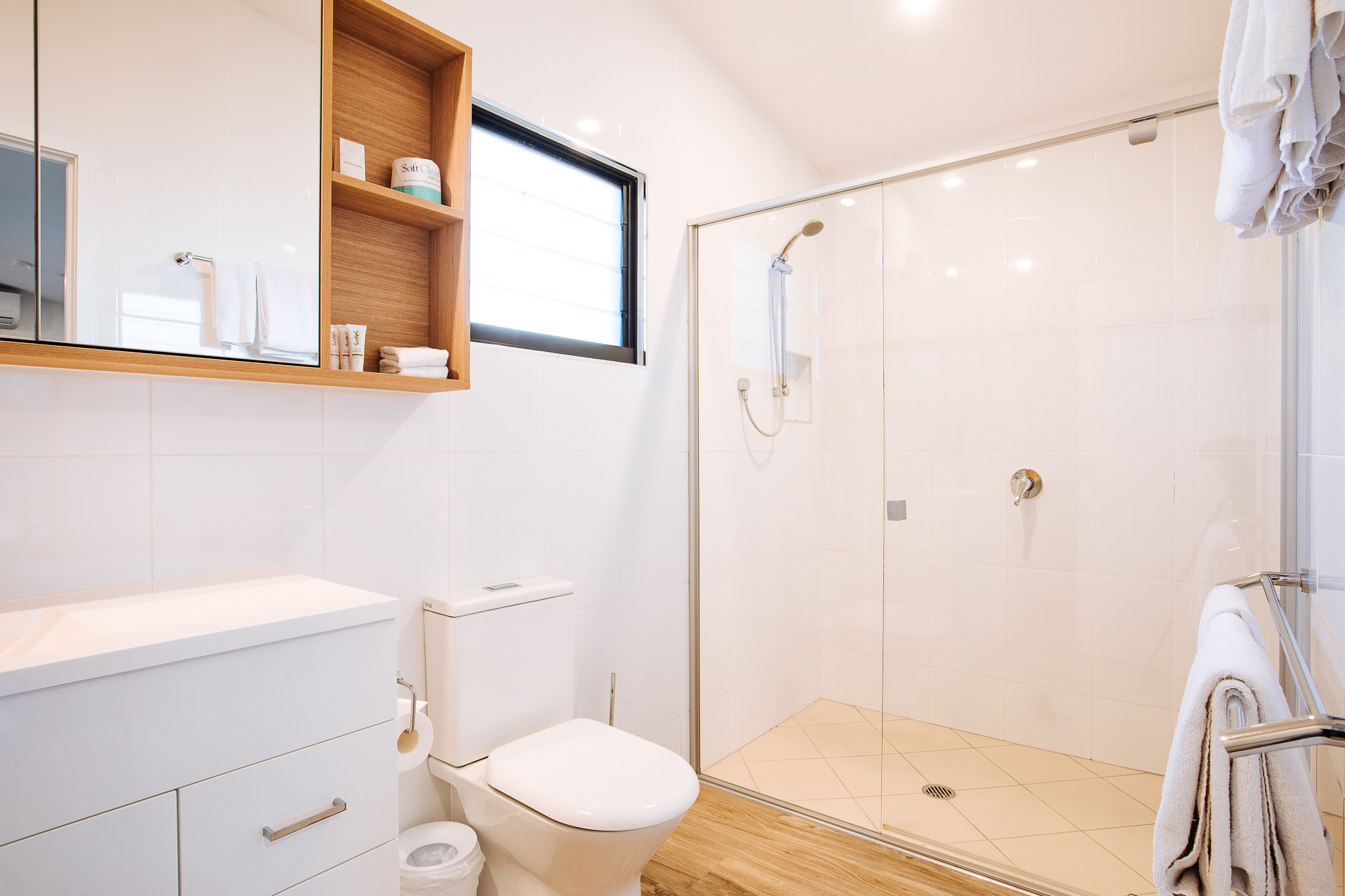 • One bathroom with shower, towels, shampoo, conditioner, body wash, hand soap, toilet paper & hair dryer