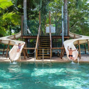 Cape Hillsborough Nature Tourist Park is nestled in tranquil forest surrounded by the beautiful Cape Hillsborough National Park, just a short drive from the central North Queensland hub of Mackay. Cape Hillsborough Nature Tourist Park is surrounded by absolute beach frontage. We have a range of accommodation, including Beach Huts and Cabins to suit all tastes and budgets along with powered and unpowered sites for caravans, tents, camper trailers and motorhomes. Our facilities include a swimming pool with water slides, mini golf, BBQs, camp kitchen, amenities blocks, guest laundry, TV & Reading Room plus much more. We welcome you to bring you friends and family and get back to nature, unwind, disconnect from the everyday and reconnect with each other and the beautiful natural environment.