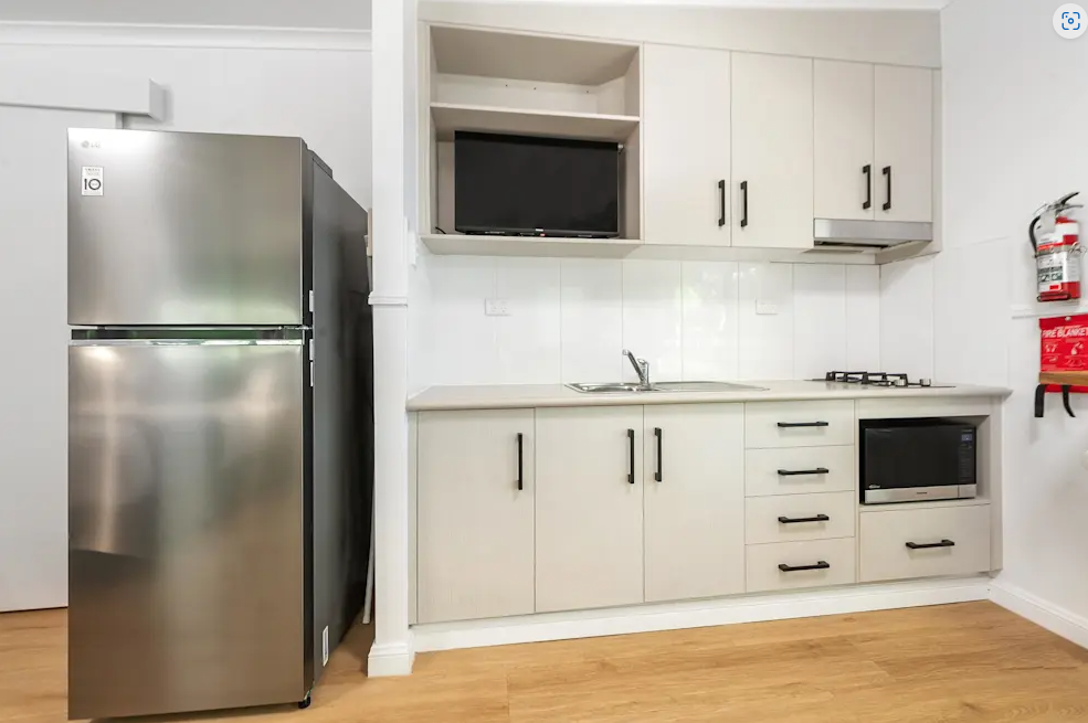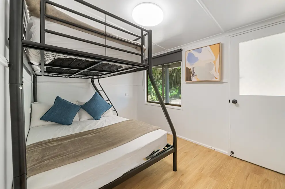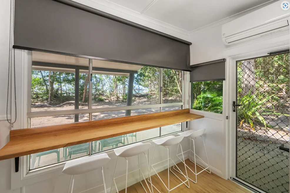Fronting the beach famous for sunrise with the wallabies and kangaroos are the newly renovated Beachside Units. This self-contained beach unit has a studio layout with air-conditioning throughout, a separate bathroom and is fronted by a shaded verandah to take in the ocean breeze. The kitchenette has a 2-gas burner cooktop, microwave, fridge, flat screen TV and a breakfast bar/dining table to admire the view while you eat. This unit accommodates 5 guests in an open-plan layout with one queen bed, and one double bed with an overhead single bunk, separated by a wall partition. There is an outdoor setting to take full advantage of the undercover verandah.