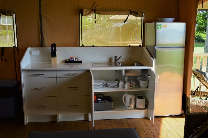 Our Safari Tents feature timber floors and are equipped with a fridge and a small kitchenette. If you would prefer a barbecue, feel free to make use of the barbecue area which is situated in close proximity to your tent. Our well-equipped camp kitchen is also available for your use.