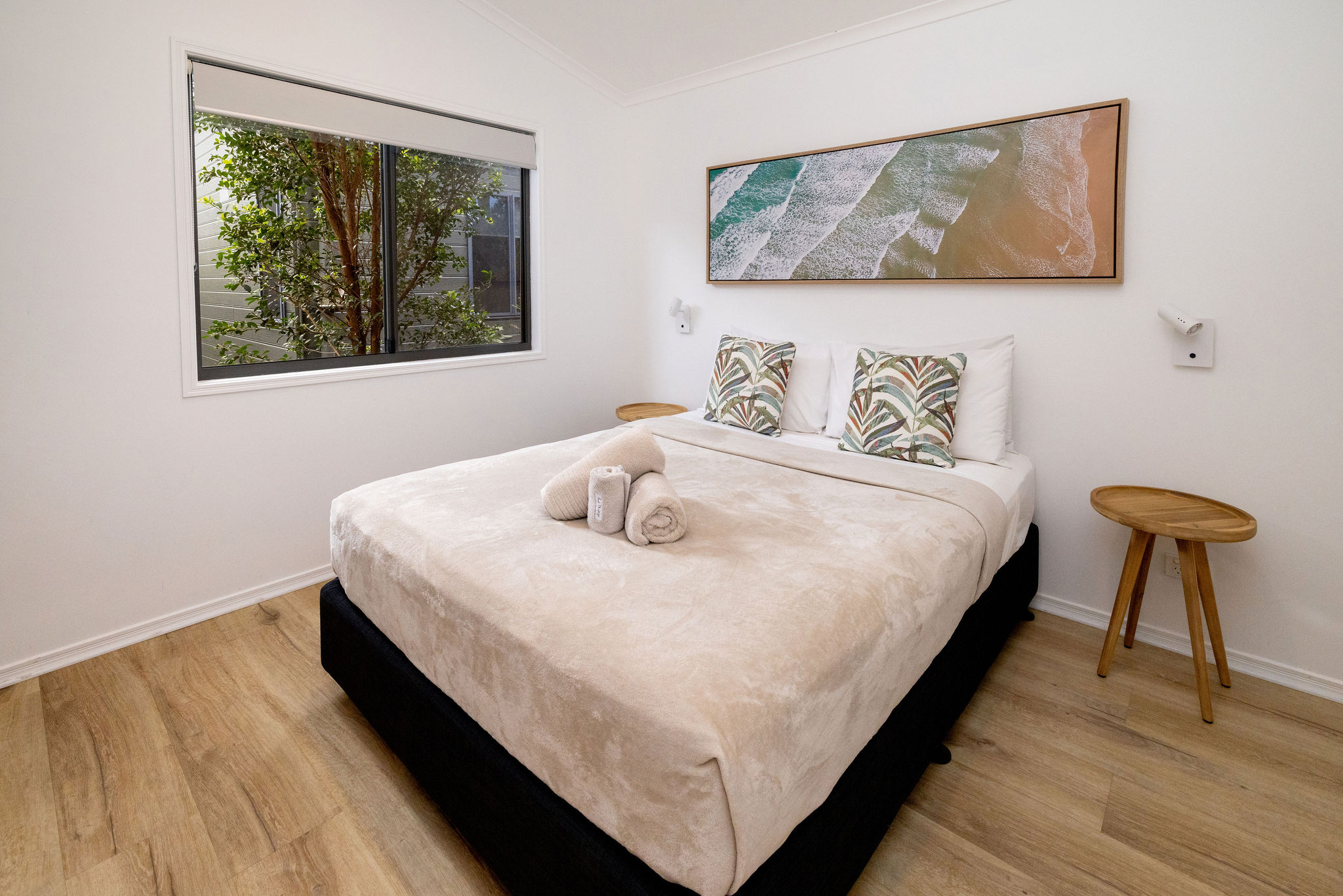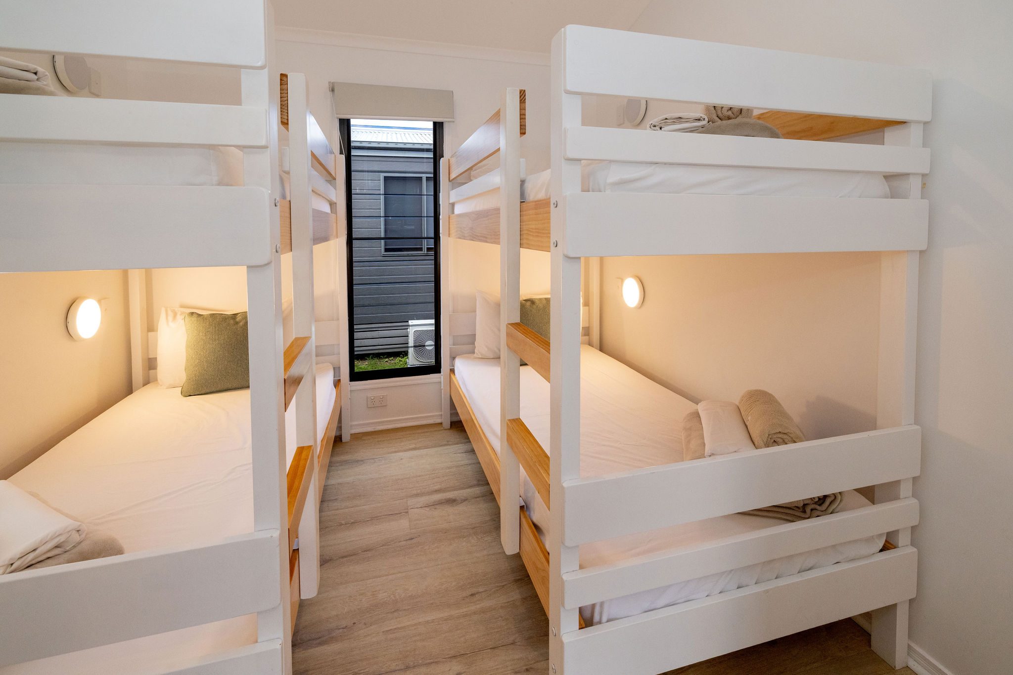 Up to 6 lucky guests can enjoy this ultra modern, deluxe cabin with its fully equipped kitchen, bathroom and living area. And for gorgeous water views, simply stroll onto your verandah, this includes 1 queen bed, 2 sets of bunks.