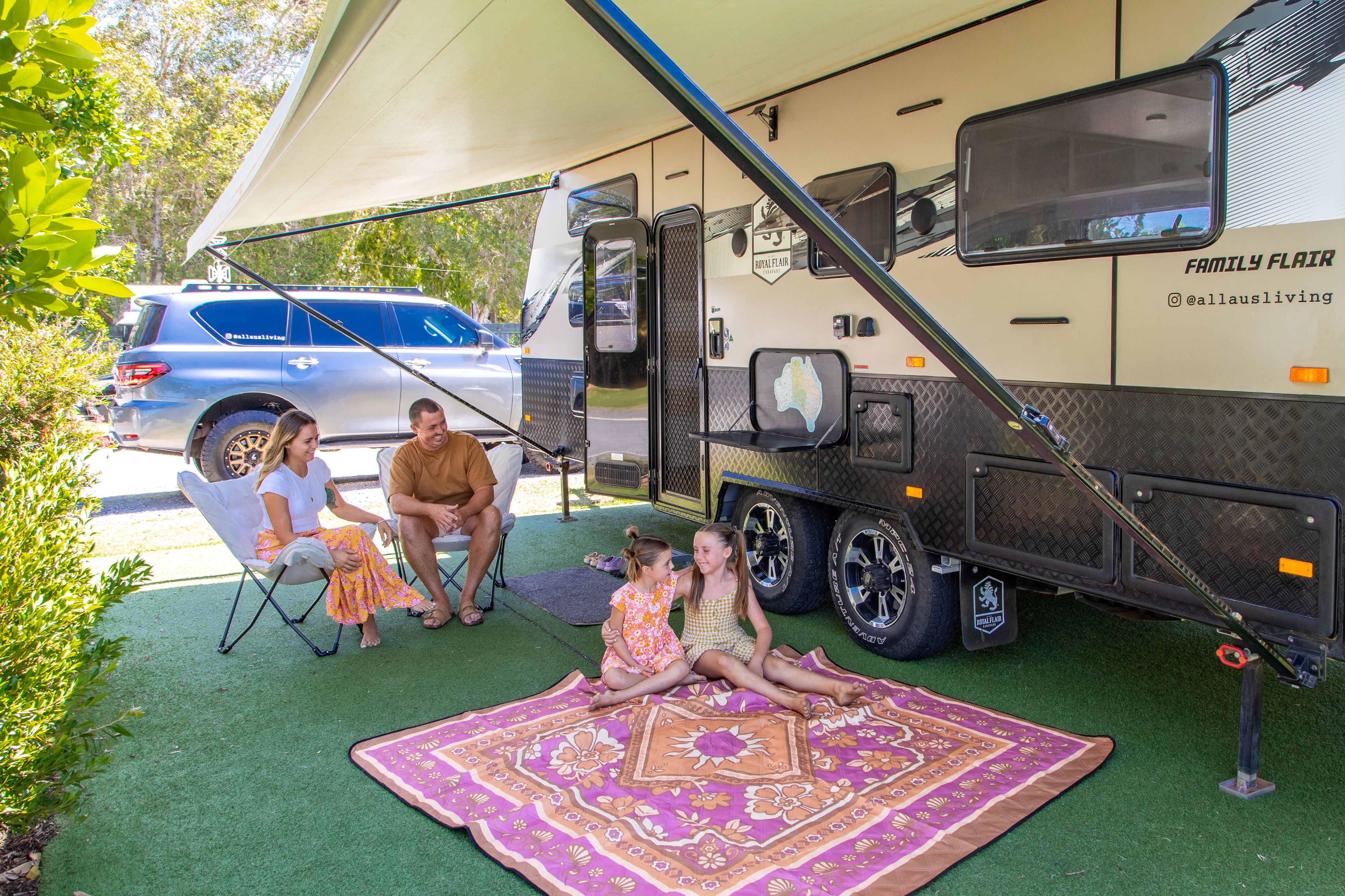 We do not permit campfires on individual sites; however, we have a communal fire pit located in our entertainment precinct for our guests to enjoy during the cooler months.